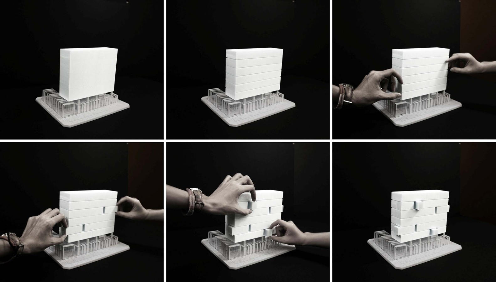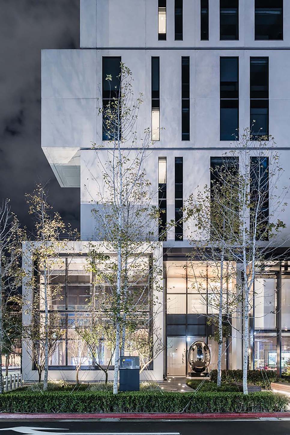 全栋建筑包含梁柱及外墙均采用预铸清水混凝土系统,建筑的两翼由纯粹的直角型体转化为如积木般有趣的凹凸变化,几处突出的方块量体像半开的抽屉般从主量体中抽出。