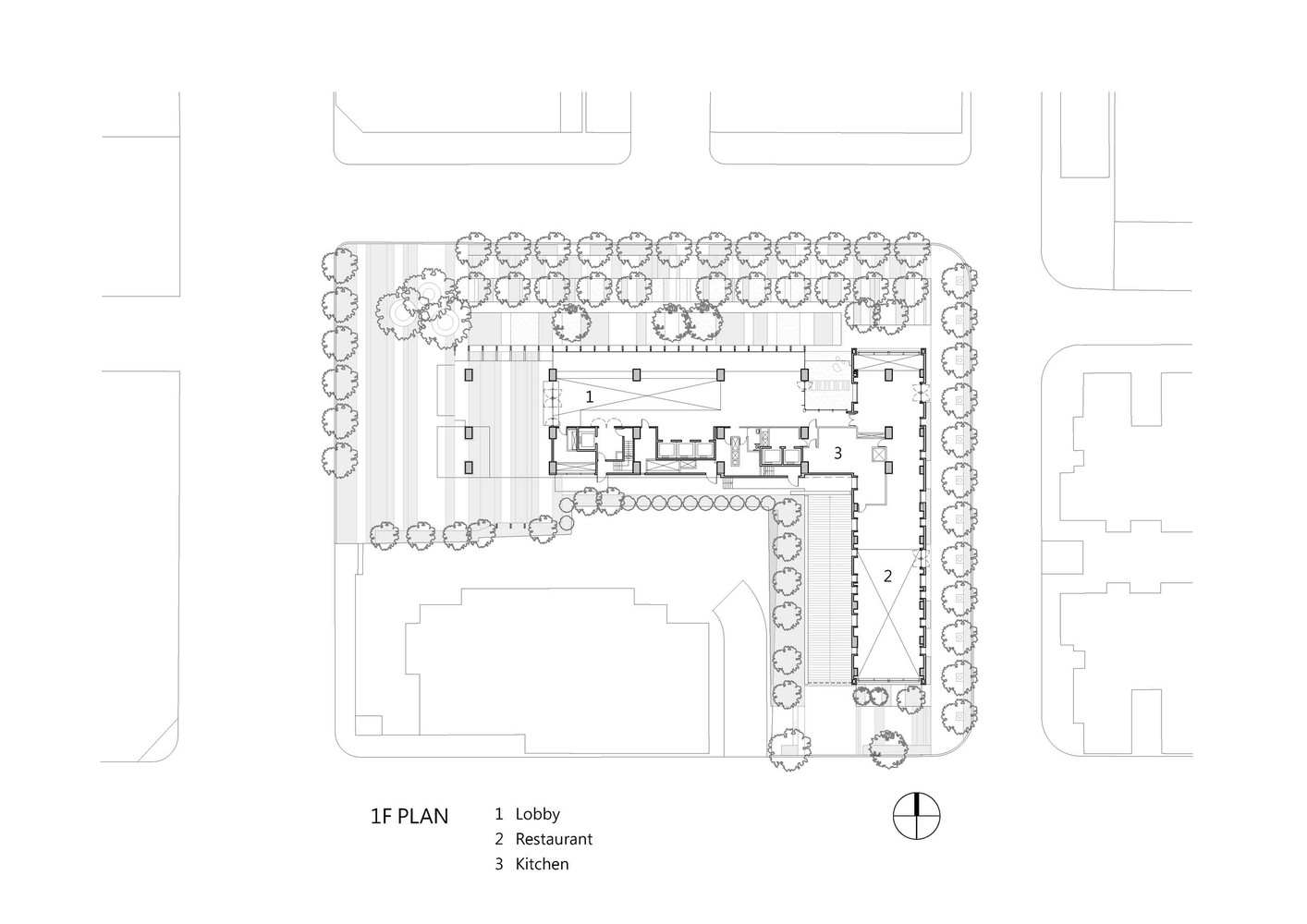 设计上以优雅简洁的商务客房配置与宽敞的公共空间规划,在妥善开发运用基地潜力、创造商机的同时,也为地方邻里提供了友善与互动的空间。