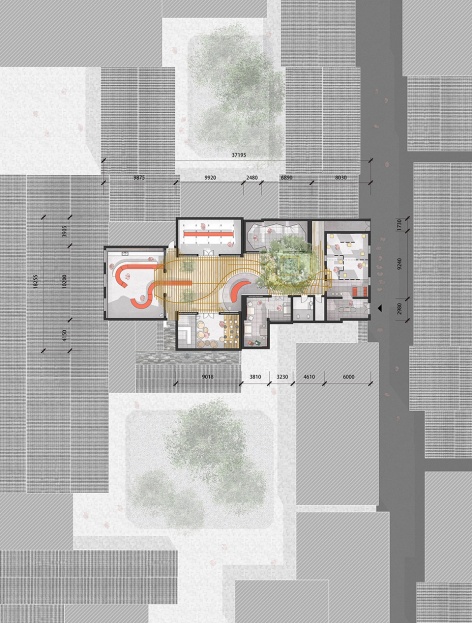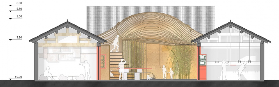 In this reconstruction, the design team put a very contemporary image and spatial prototype into the courtyard through a “soft approach”. In this way, the design created a kind of overlap with its original courtyard both from virtual and real space. This combination applied a new way of perceiving and experiencing the courtyard space.