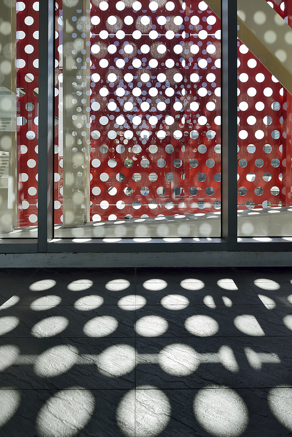 Material: fair-faced concrete, perforated aluminum plate, glass
