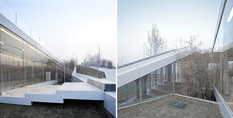 Responding to the horizontal feature of surrounding landscape and trees in site, the building is made into a linear and folded form. It zigzags and flows, sometimes approaching the ground, sometimes floating in the air. While inside it provides to visitors various views at different level and angle, it also gives an impression that architecture is touching the site in a very “light” form, thus creating a subtlety. The soft soil geo-condition of the site also makes this floating form structurally reasonable since slim columns on pile foundations support the building.