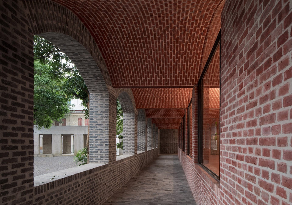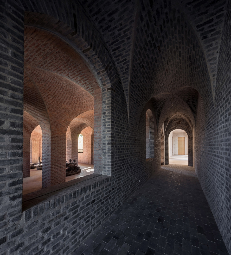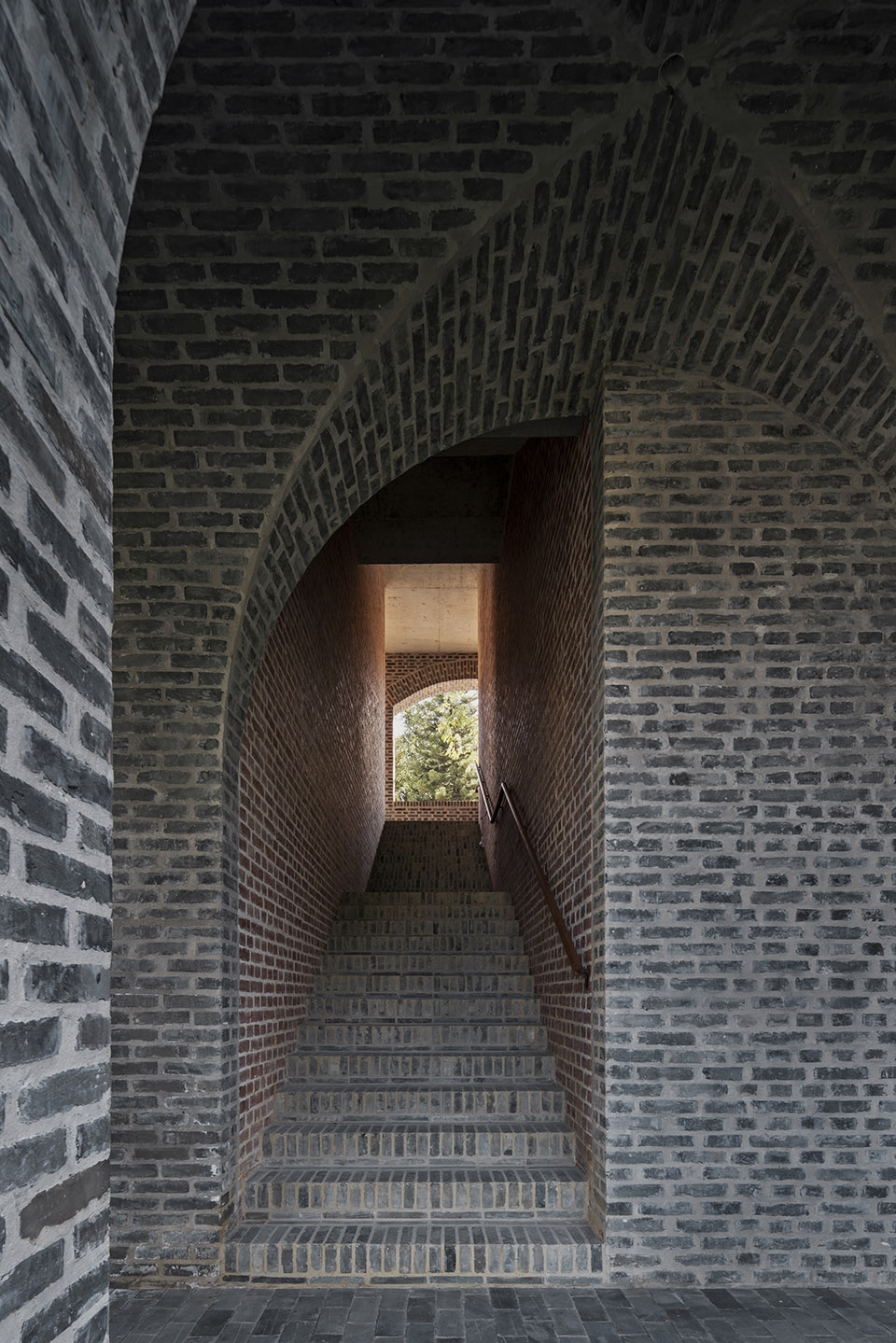 The site consists of two sets of courtyards, with lush trees and an abandoned cinema, a grey brick building originally built in the 80s. Most buildings on the site and in adjacent villages are made of brick. There is also a brick kiln still producing grey bricks near the site. These local features triggered the initial desire to build with bricks. Today, brickwork remains the predominant construction method in the area which makes it reasonable for adoption. Consequently, brick leads to different forms of vaults in architecture.