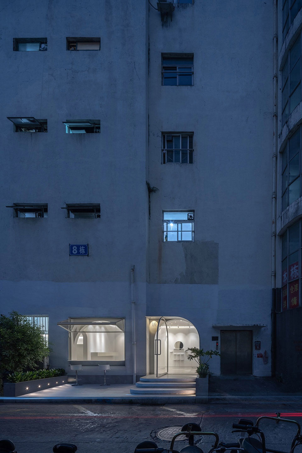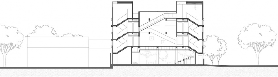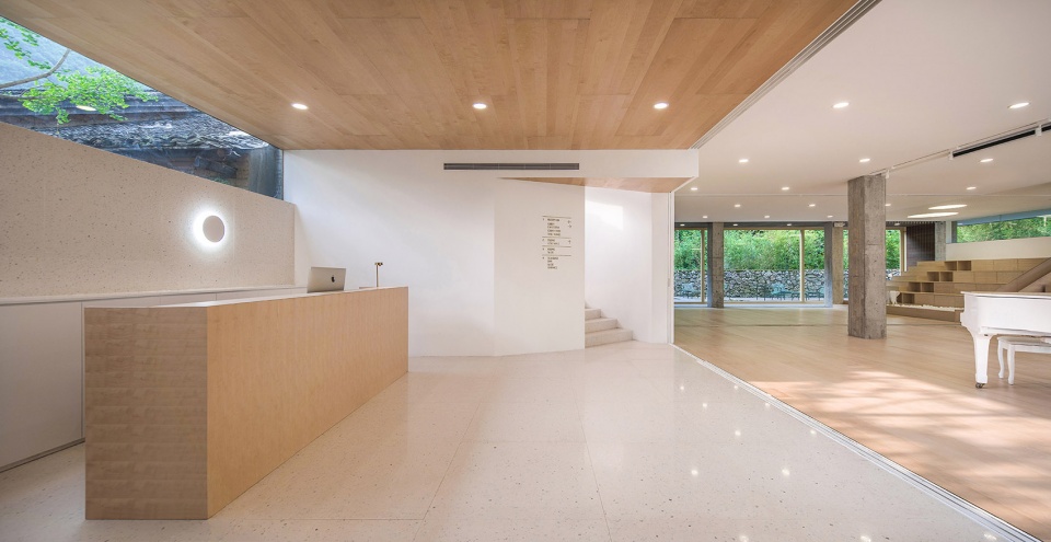 The ground floor has an impressive permeability, due to its original height and large span, the concrete frames were all optimized tectonically. The new lobby area inherits and celebrates this ambiguity of indoor-outdoor, by integrating the reception, dinning and service areas to the west, maximizing the public space with theater, playground, reading room and more. Furthermore, the sliding doors and large 4x3m glass doors create versatile and generous stage for future events.