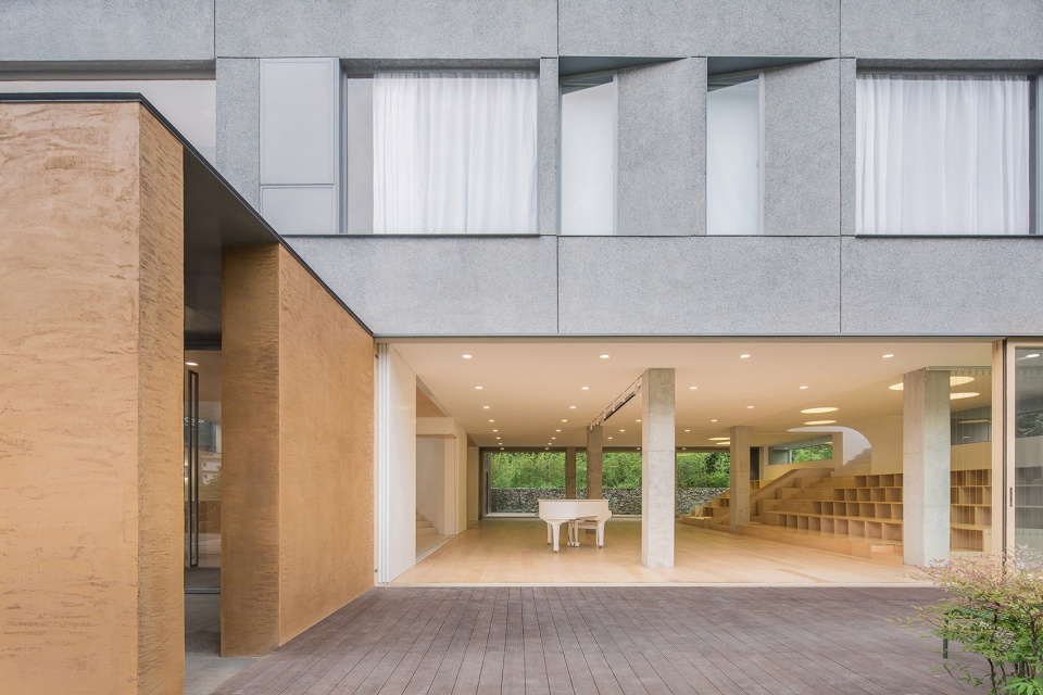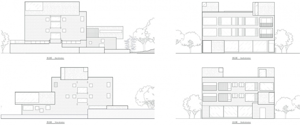 The strategy was to accept the existing conditions and establish co-existence with the new. Constrained by structure and changing conditions of property rights, the main part of the building is maintained as a living space, as originally envisioned, while new programs protrude out in smaller boxes, posing conversational gestures with its surrounding, and compromising its scale. The main facade is finished with granite-stucco coating, while the boxes are earth-colored to mark their difference.