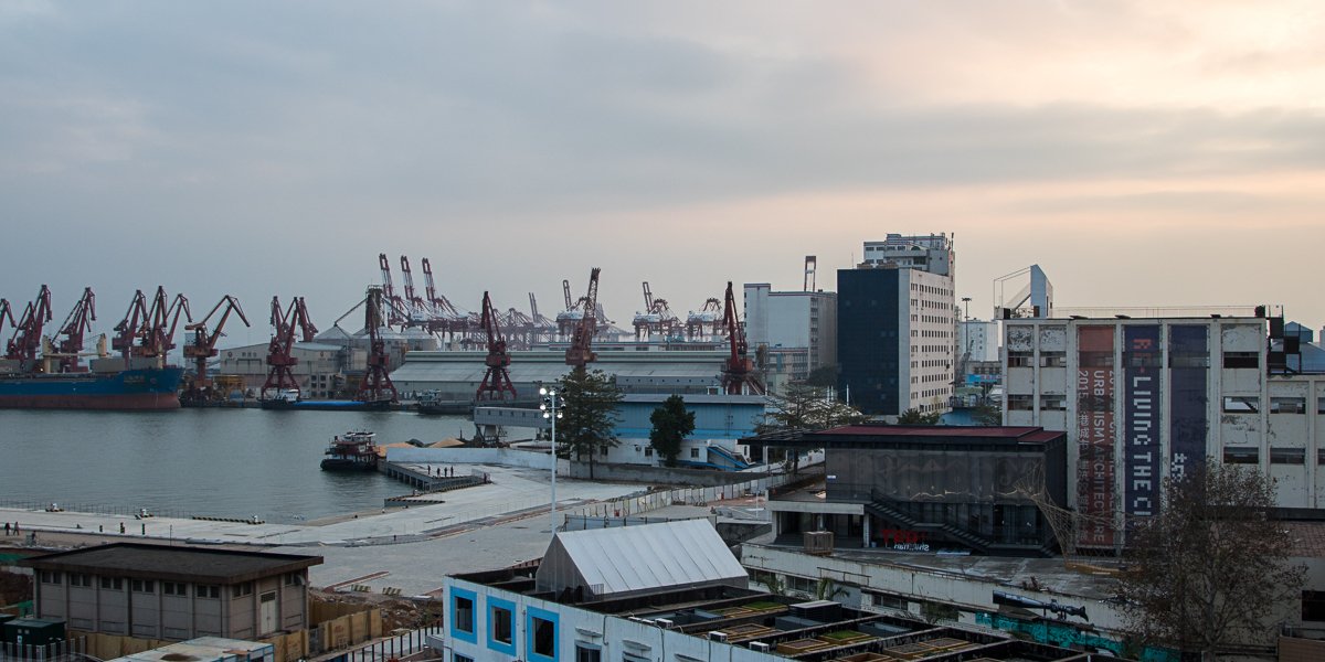 In the fall of 2015, the 1/3 Kiosk was launched at that year’s UABB (Bi-City Biennale of Urbanism/Architecture). Themed “Urban Borders”, the main exhibition venue was the Dacheng Flour Mill in Shekou. From the Shekou Port Metro Station, located in the southwest corner of the city, visitors had to walk along the desolate street for about 500 meters to reach the factories where the exhibition was help.