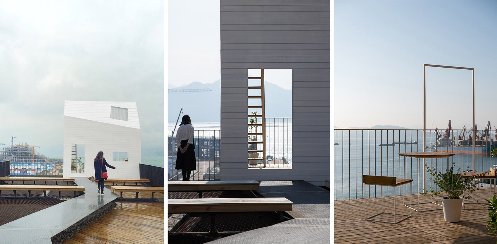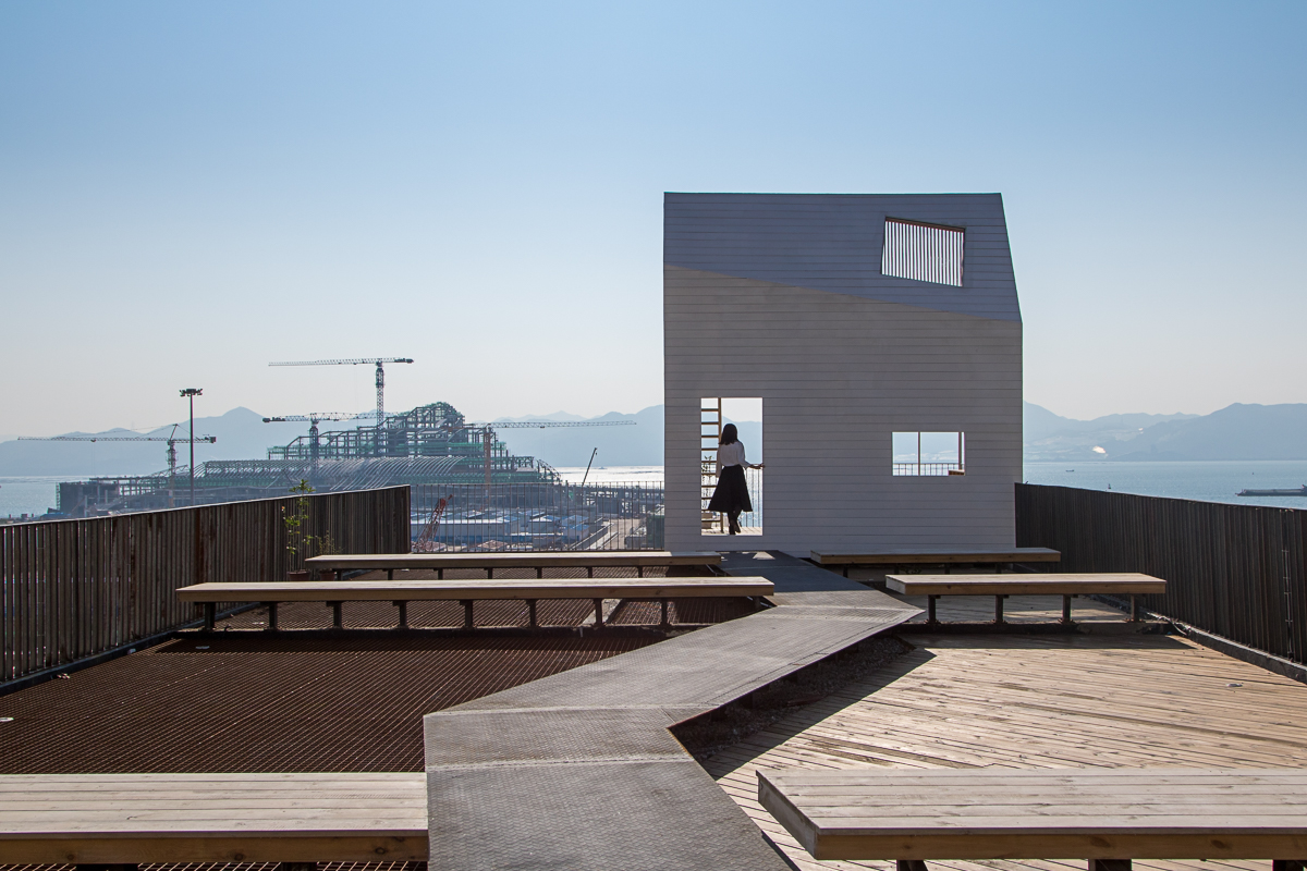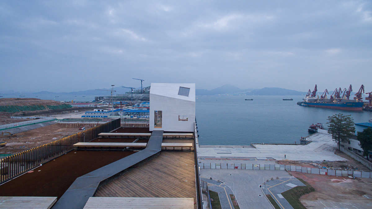 我们后来多次爬上屋顶去看它,每次心情都大不相同。2016年下旬去的时候,小房子面对的蛇口客运码头已经完工;当时如果知道会盖成现在的样子,应该会重新考量这次选址。后几年再去时,因为没有任何维护,小房子老化很快,白色立面上出现了涂鸦,略有心酸。而此时对面太子湾区域塔楼的飞速成长,小房子的视野也被遮挡。在无人陪伴的几年里,它独自见证了太子湾的崛起。转念来看,可能它更多承载的是太子湾方向不断升高的回看和凝视。这似乎是我们对深圳速度最真切直白的一次体验。但这之后,就再也没有萌生过去看它的念头了。