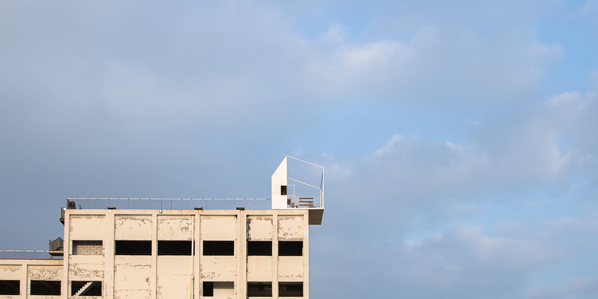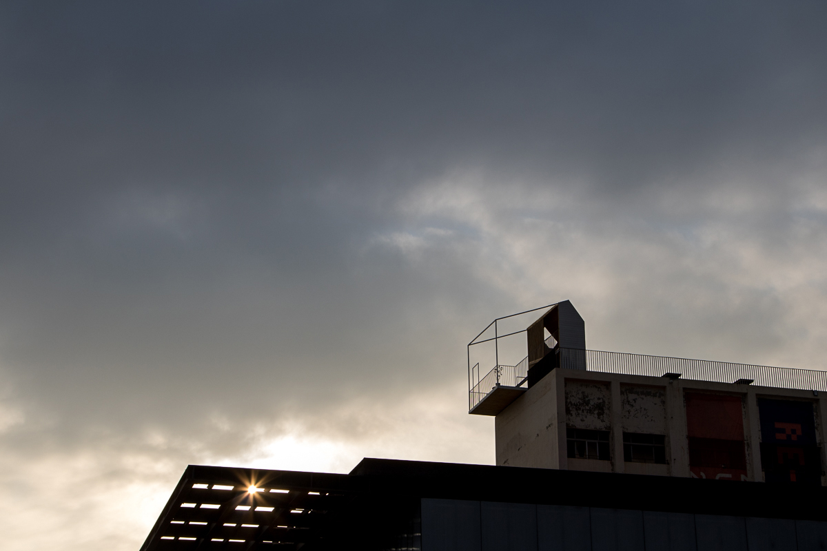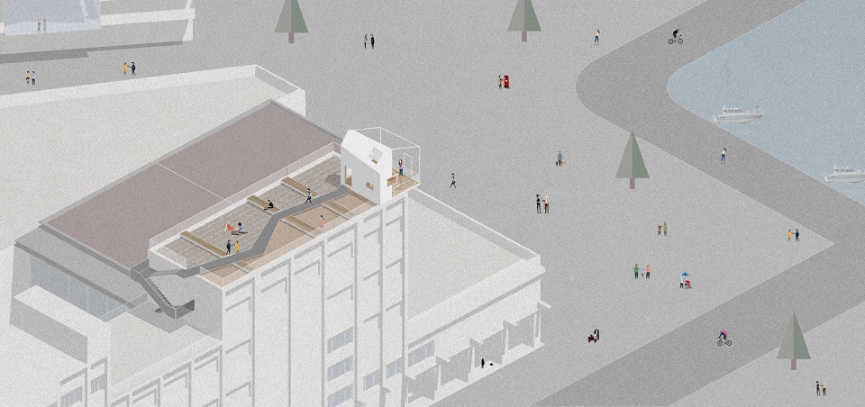 在当时看来,太子湾的宏大图景还显得异常“遥远”,所以凌驾周边环境体量的大成面粉厂,一直是该区域庞大高耸的工业地标。在李兴钢老师的支持下,我们最终选择了一个场地制高点,一个观海和见证太子湾发展的最佳记录视角:面粉厂的磨机楼屋顶。