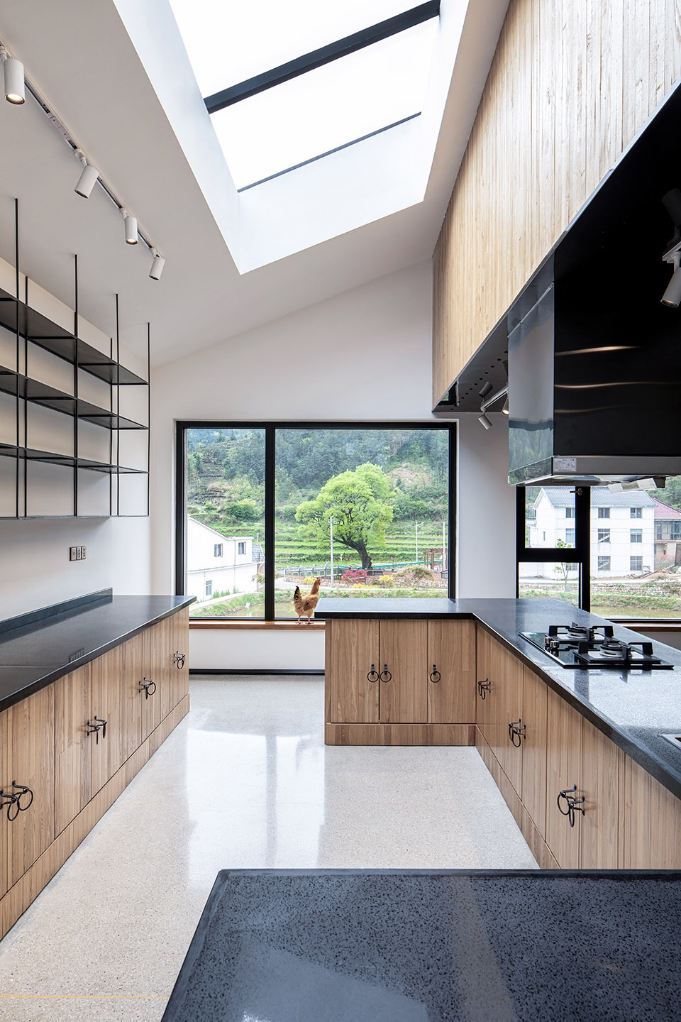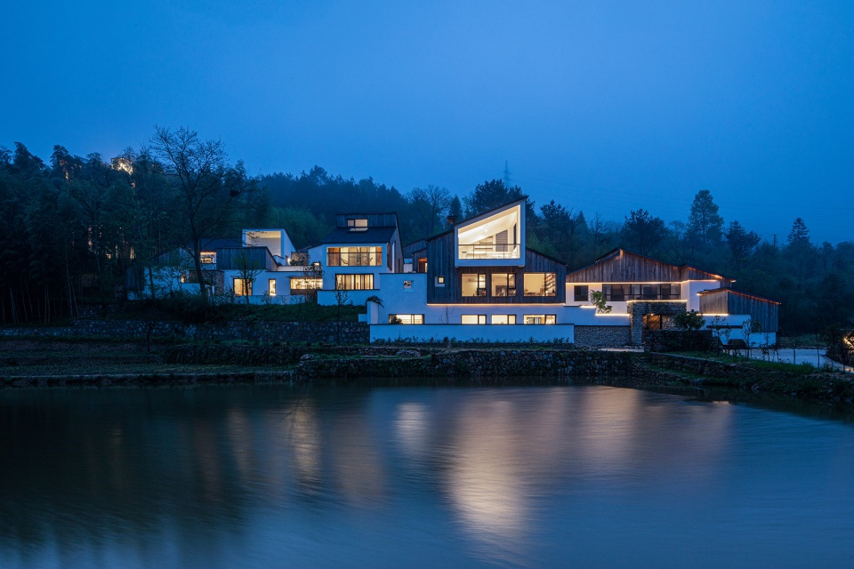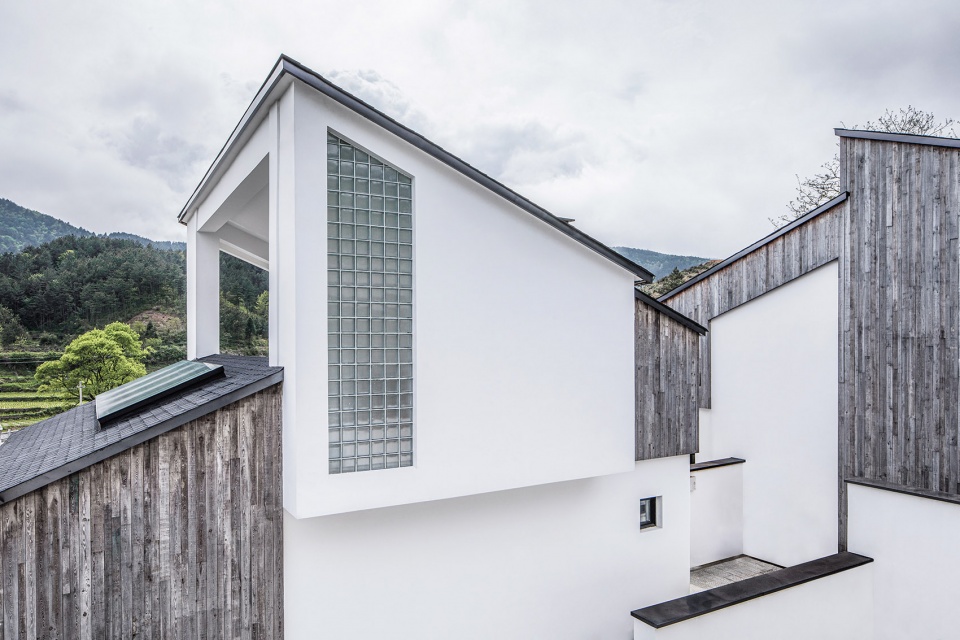 The planning of the cross-shaped courtyard followed the crisscross layout of the “traditional houses in west Anhui”, with mountains as screen and water as its neighbours, the courtyard extended along the vertical and horizontal axes. The old vestibule and back hall of the original “traditional houses in west Anhui” evolved into the first public courtyard and an expanded lobby in the new designed architecture. Those who come and live here are more than visitors from afar but seen as neighbours and relatives in the village, which embodies daily but unusual emotions.