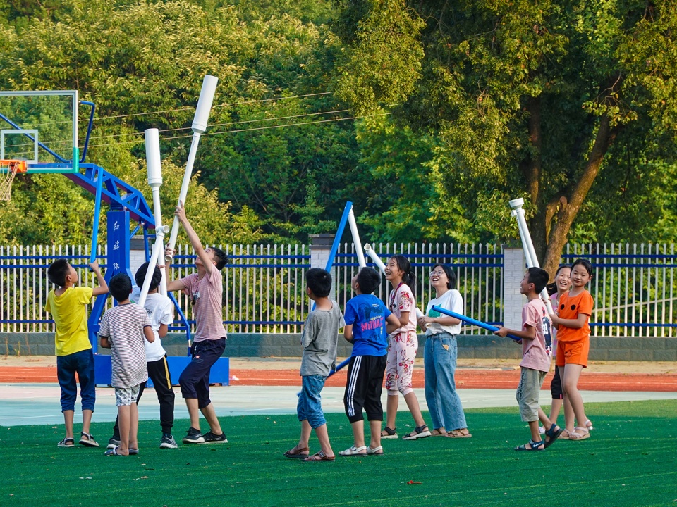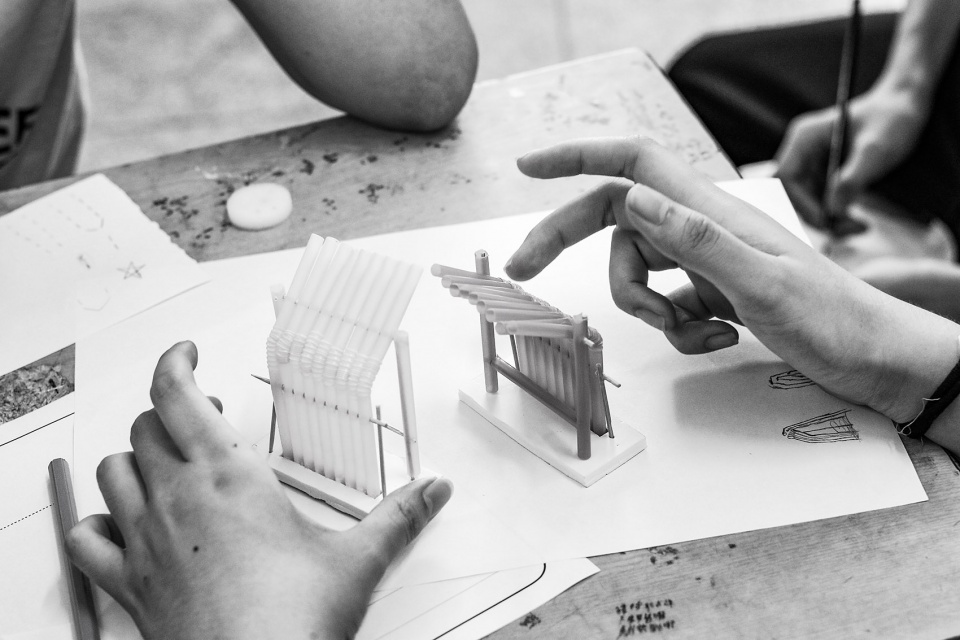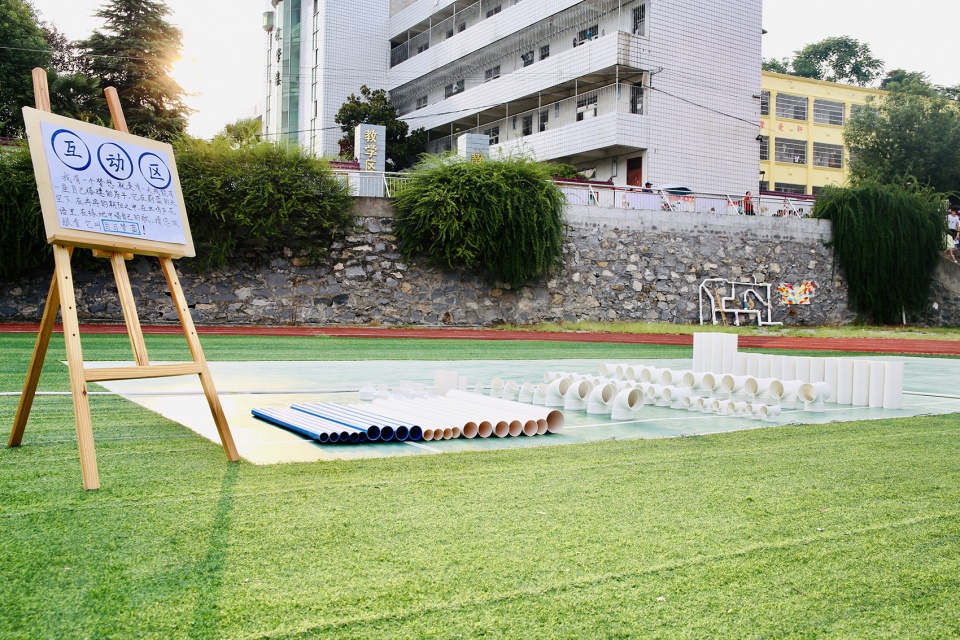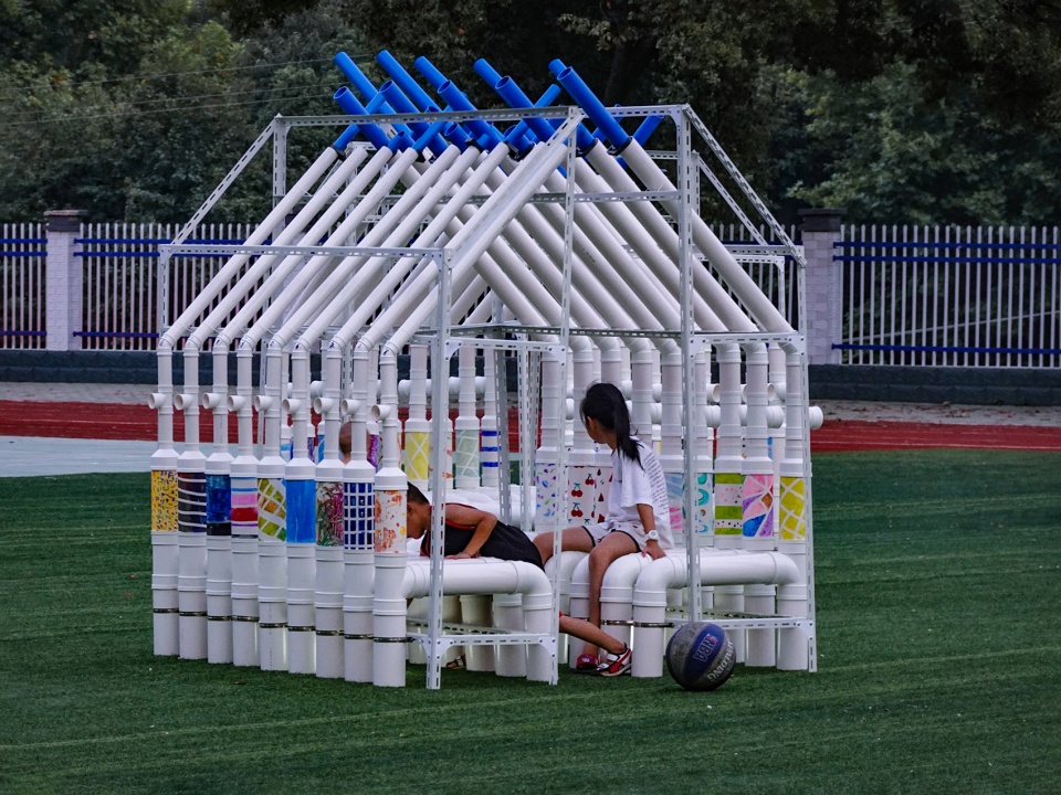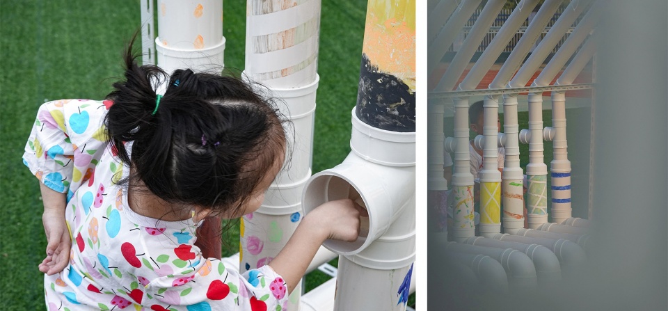 According to the original plan, during the course, there would be a one-day-course that the architecture camp and music camp should merge and study together. However, there was an unexpected vacancy day due to a temporary adjustment of the schedule. During the study, the children were always interested in the PVC pipes and the connections that they were eager to try to design and assemble them by themselves. So the architect team decided to add a new part in the course-a ball game which they could design and build their own “equipment”.