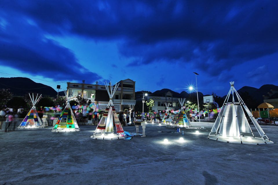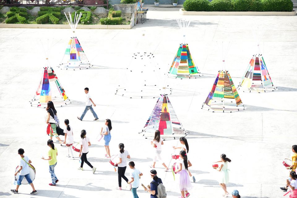 “I really enjoyed myself today in the workshop…It is too hard to leave that place, as I couldn’t control my eyes stare at such a fascinating piece of work. … This is the first time that I have a chance to make so big a stuff in my childhood.” This quote is from the diary of Xia Yu, a local left-behind child, who is one of members in Sunners · Space Installation Construction Summer Camp in Yilong (Nanchong, Sichuan Province). During the camp, 24 children had designed and set up a series of space installations by themselves for the first time. These beautiful works have attracted a lot of local residents and students to come to the exhibition on the last day, which seemed to make it become a carnival, as lively as the Spring Festival.
