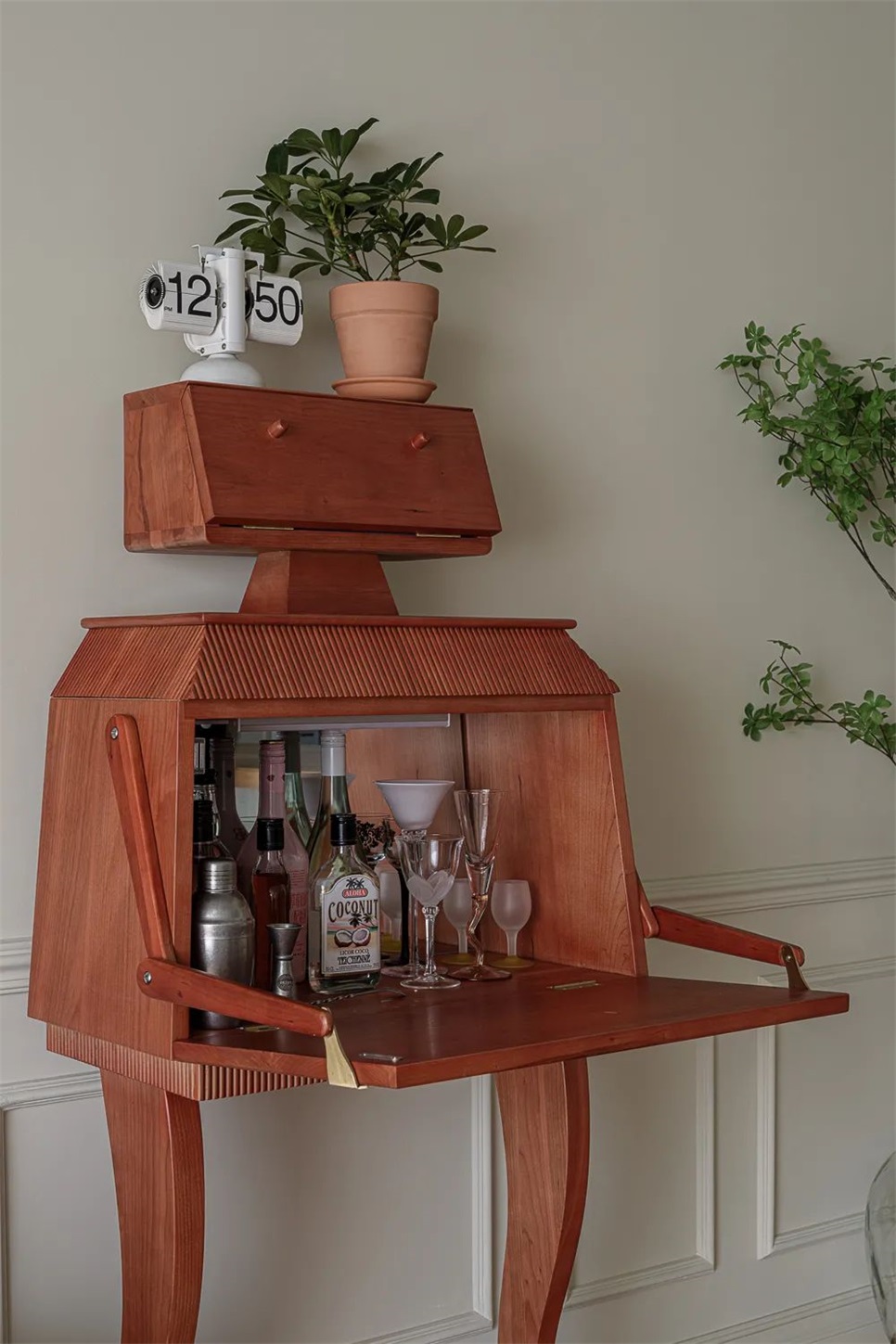 The porch cabinet connects the island, where Mr. Wang often mixes different flavors of drinks. One dares to do one dares to try, which also produces a variety of small surprises in life.