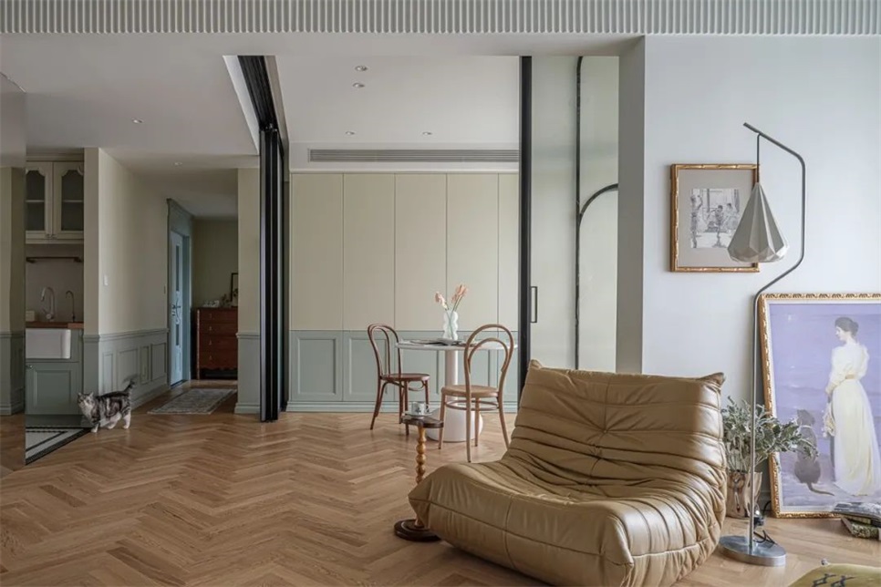 Before entering the living room, I chose a retro robot wine cabinet to act as the "door god", which added a small interest to the space. The porch unloaded the fatigue of the day, and the soul was relaxed after entering the living room to open the wine cabinet for a drink.
