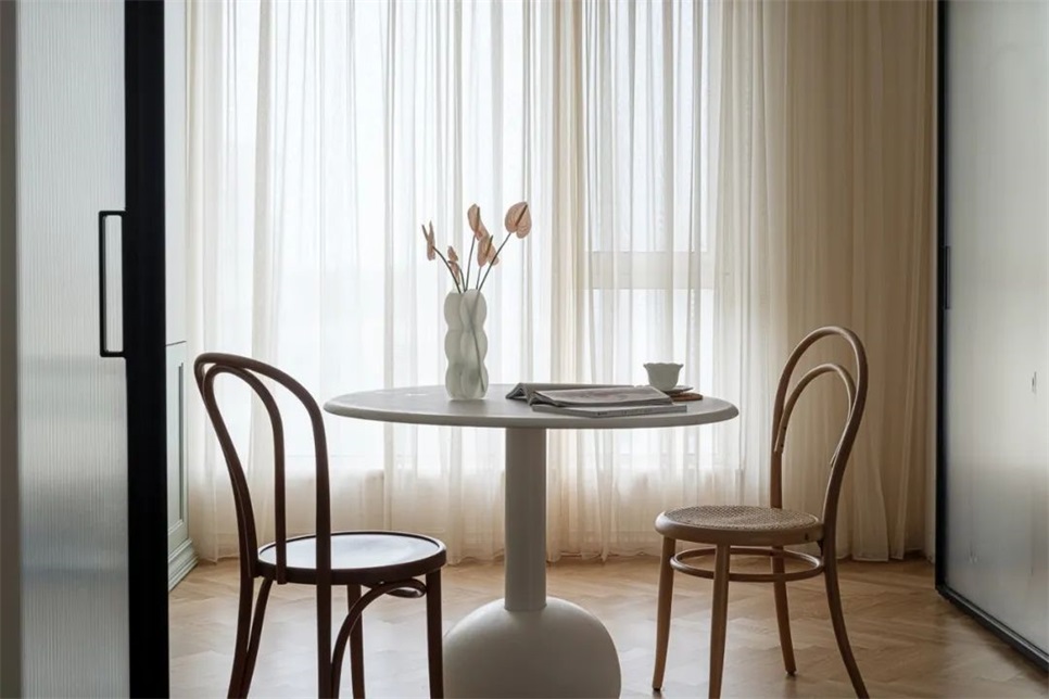It is worth mentioning that the soft match single product, simple and restrained, but there is a small reason: the white table is from the Spanish brand Sancal, the dining chair is concise and neat representative of GTV.