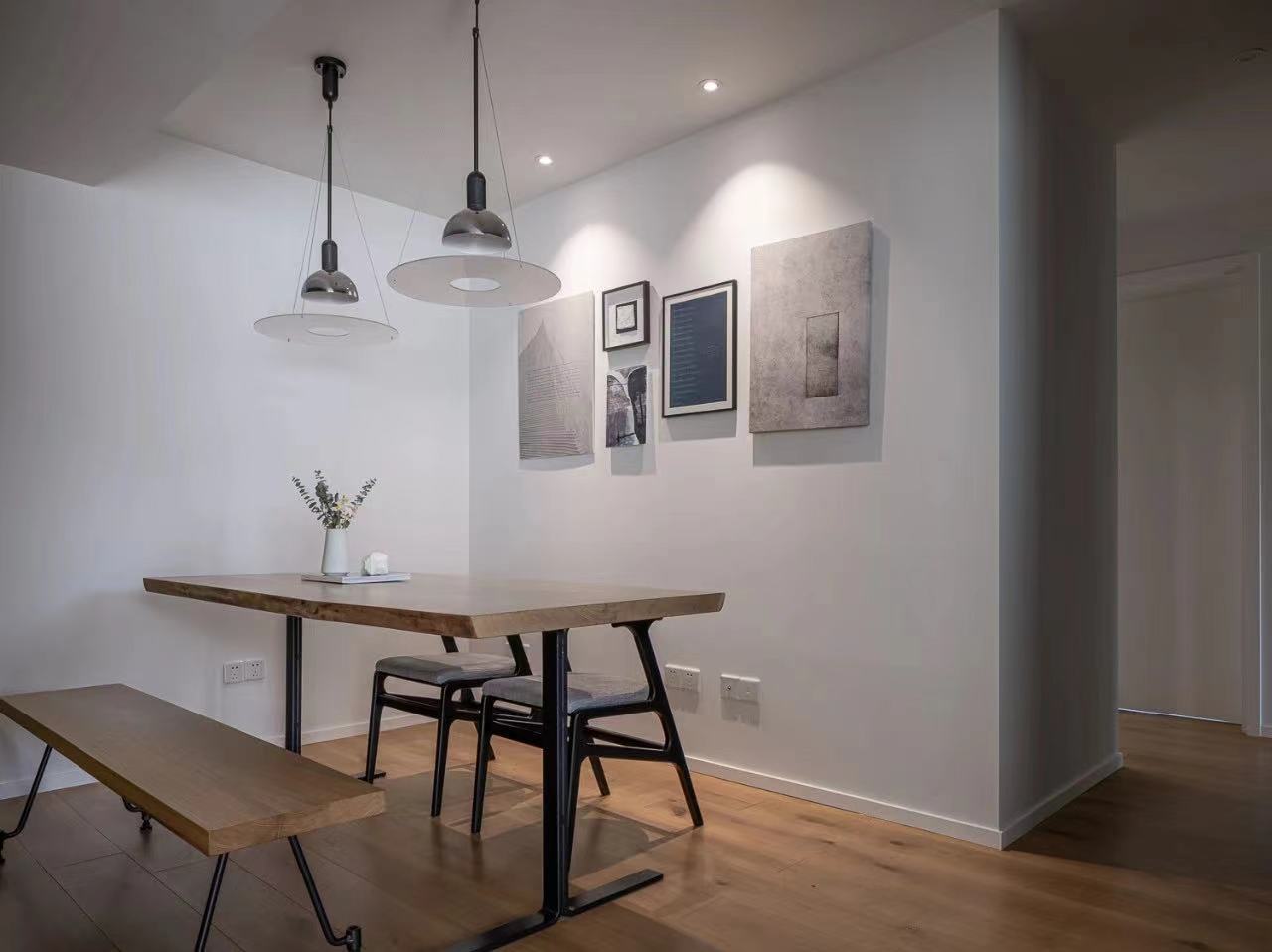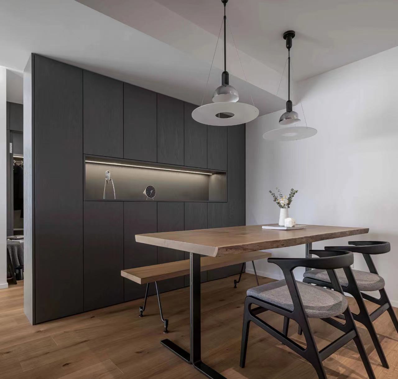 The original dark dining room is adjusted to the original cloakroom area, with the natural light of the kitchen, the dining room more bright and unobtrusive;