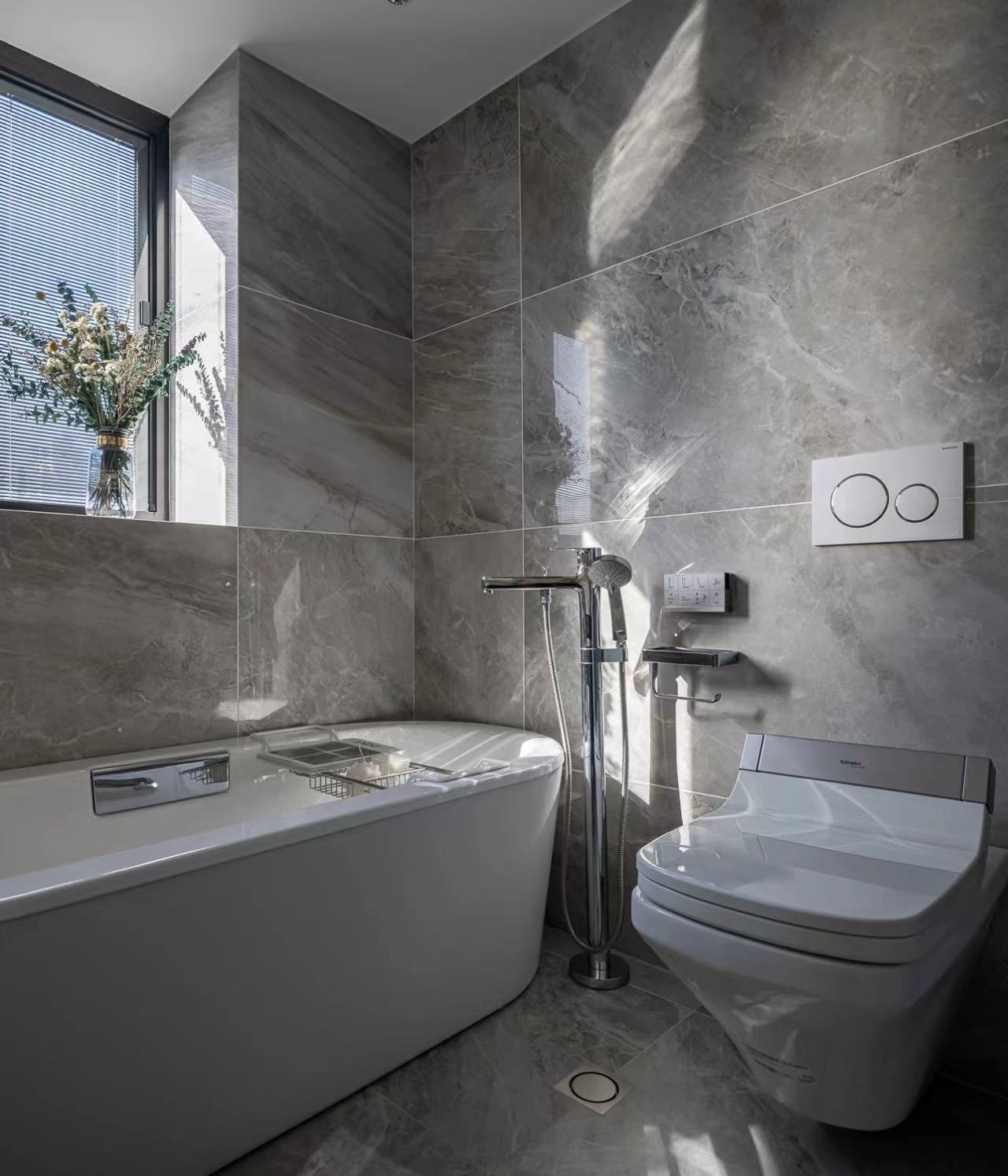 卫生间设置浴缸和淋浴满足不同沐浴需求。