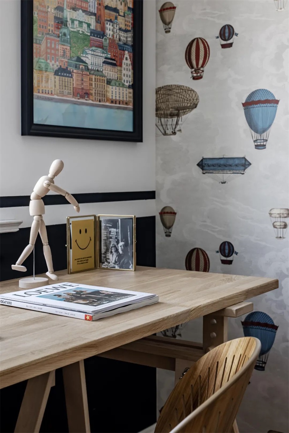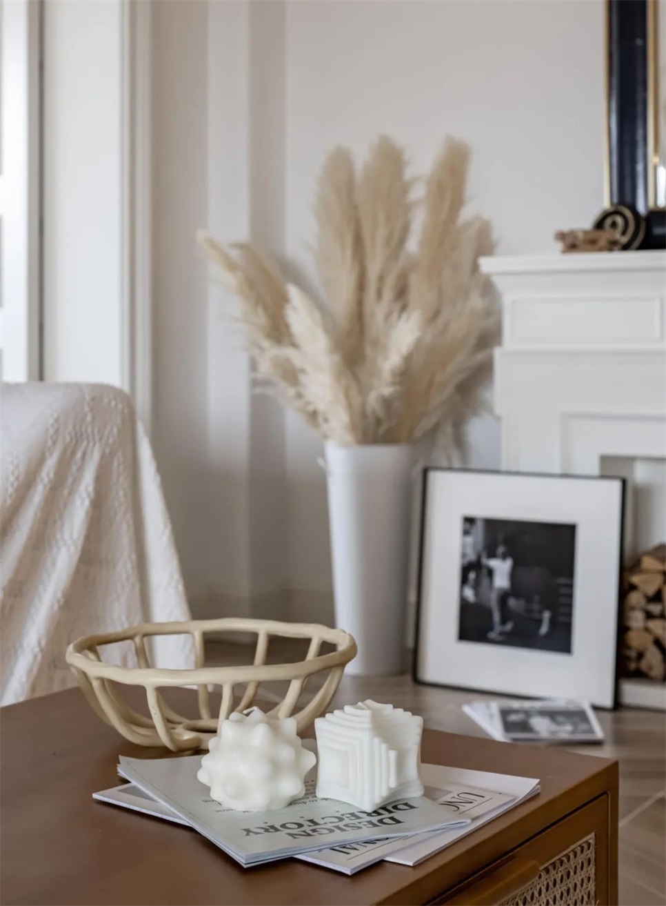 装饰方面,因为夫妇俩游历过多个国家,但还是最喜欢北欧家居中的人情味,空间中软装更注重与自然环境的结合,芦苇、木块,从旅途中淘回来的旧古董杂志架、蜡烛台,朴素自然有着原始独特美。