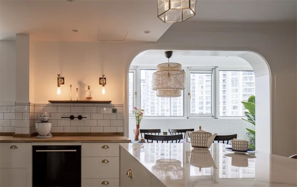 4.U型厨房延展台面,增设备餐与收纳空间 提升便捷度同时延展面宽扩大空间视野;