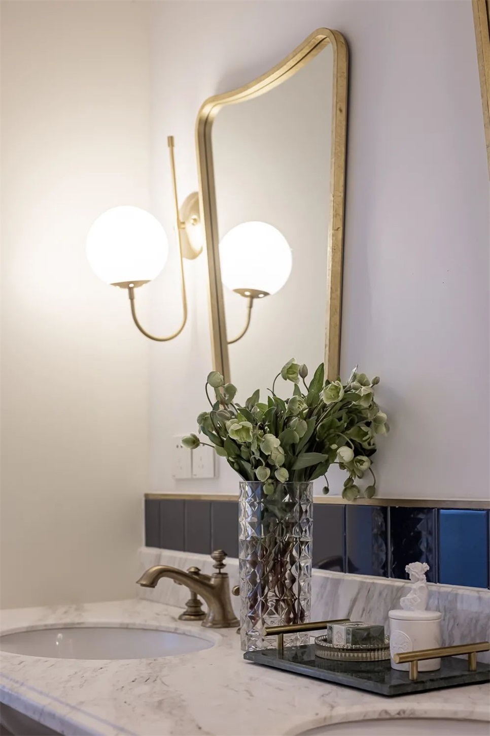 3. Set up a double basin washing area, does not occupy the internal area of the bathroom, ensure that the bathroom has sufficient use scale, on the other hand, realize the separation of wet and dry bathroom; Double basin can be used by many people at the same time, integrated with the front and back of the TV background wall, more efficient use of area;