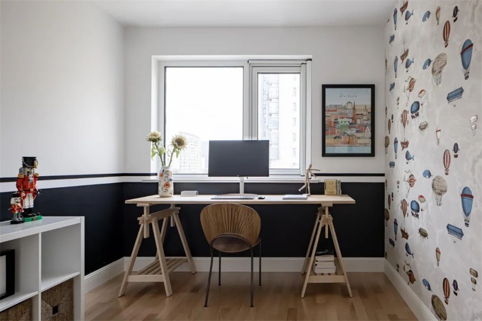 目前还没有小朋友,因此,采购了一些简单的书桌柜体暂时作为书房使用。