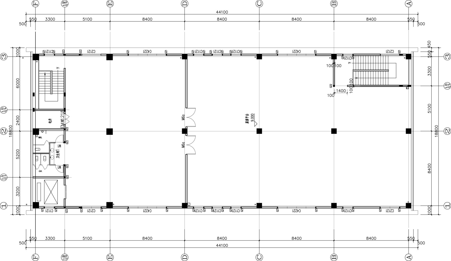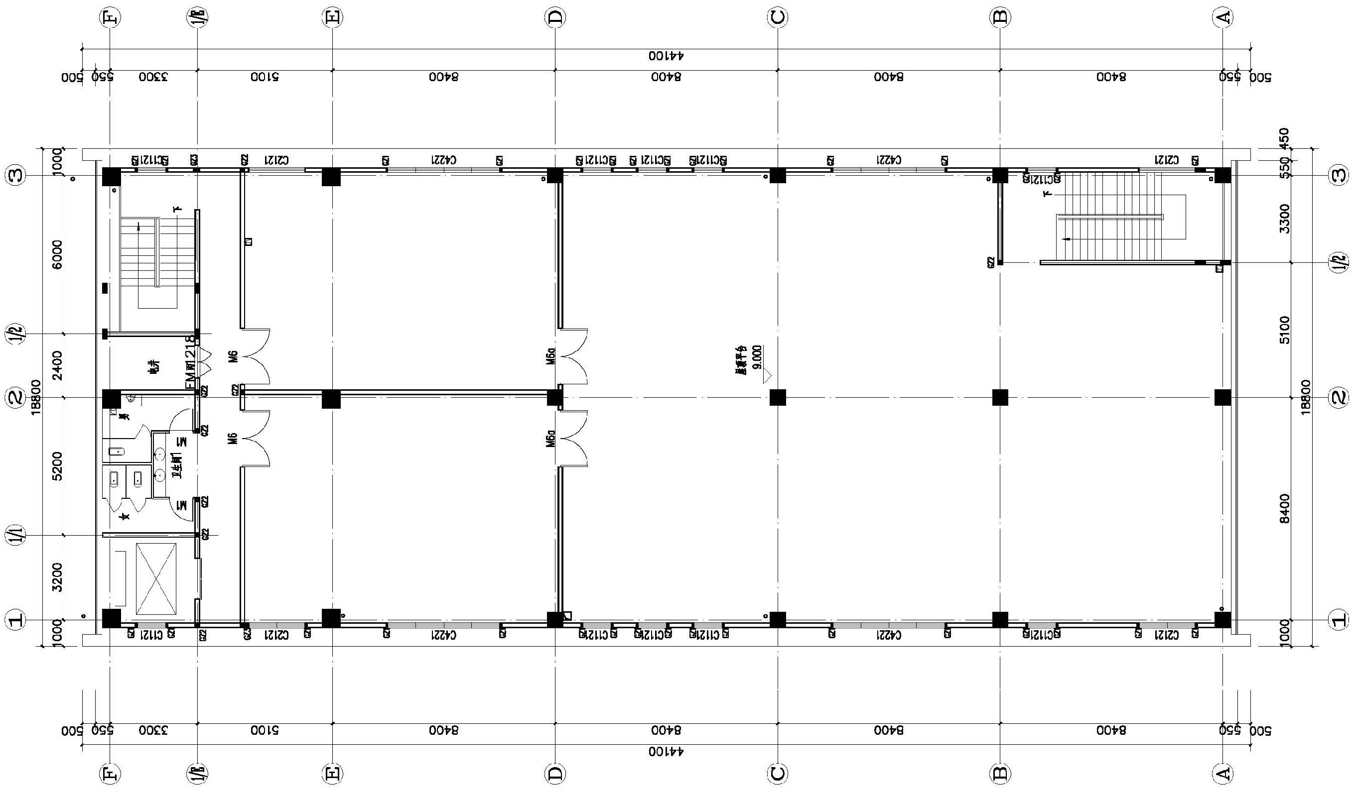▼46#楼二层现状平面图,Current floor plan of the second floor of Building 46 #