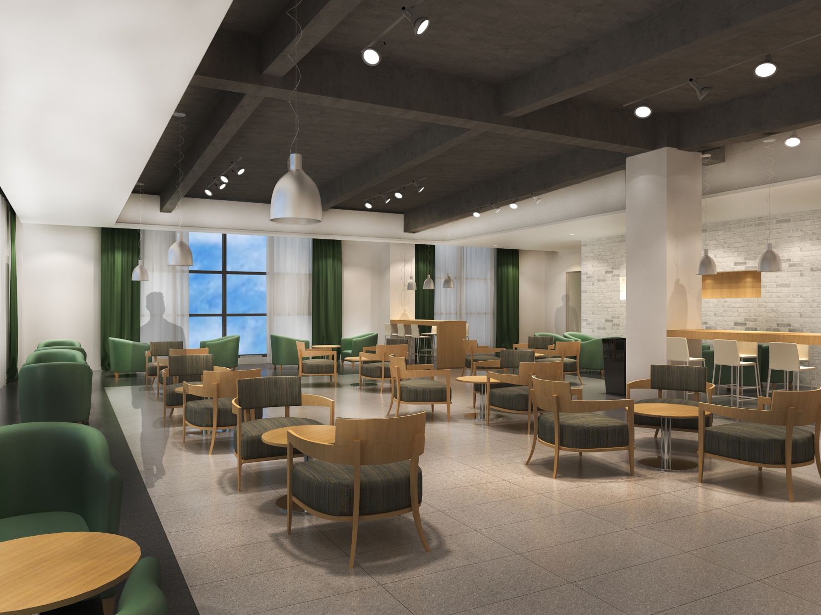 Rendering of coffee shop on the third floor of Building 46 (View 1)