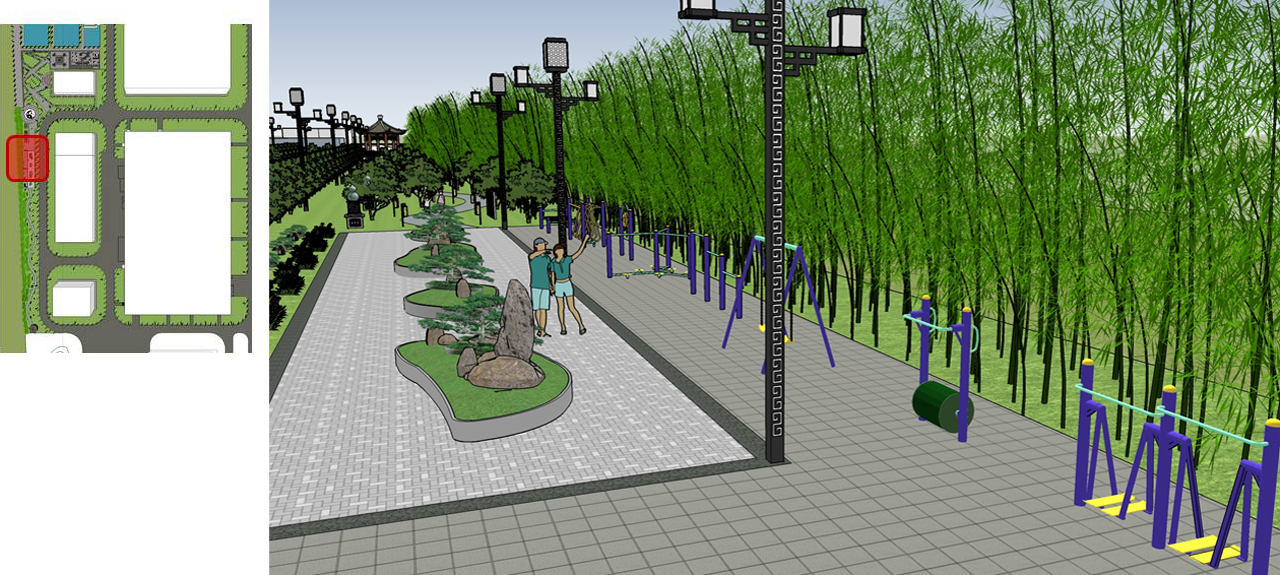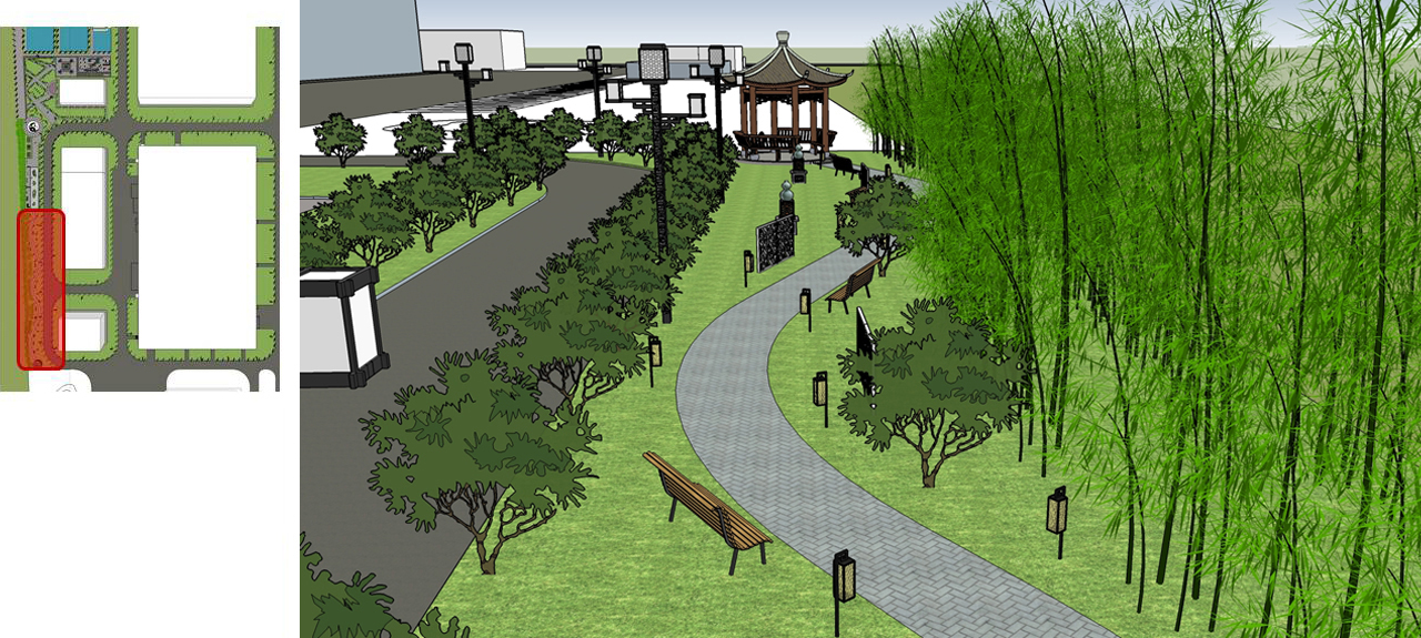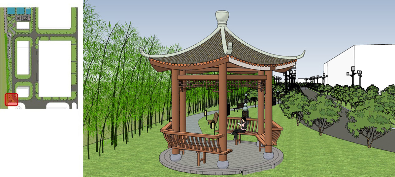 Thinking of the Source of Drinking Water, Innovating Traditional Chinese Medicine, and Pursuing Longevity; Heaven and humanity follow the same order, and heaven and earth serve the world; Gathering a hundred herbs to make the world fragrant. Three main squares, one core landscape axis, symbolizing the past, present, and future. The square on both sides of the wings symbolizes the coexistence of the main and the secondary, and flying together like wings. The multi landscape branch road network connects various core squares, symbolizing the essence of the Compendium of Materia Medica, like the meridians of the human body, with unobstructed and smooth flow, thriving day by day.