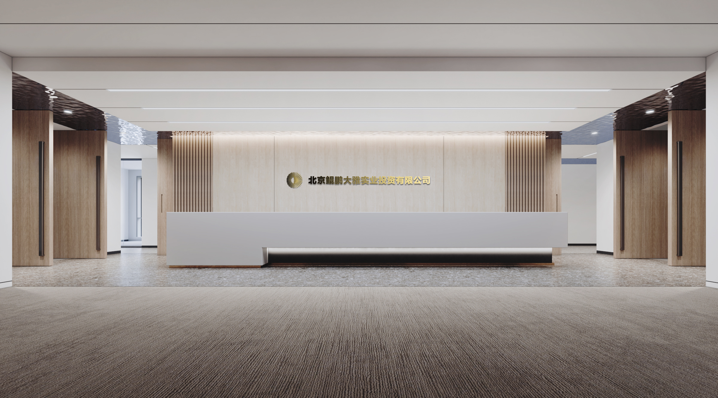 整体空间基调:庄重典雅、简洁、高品质,展现企业的核心文化理念,肩负着特殊使命,不失传统文化的延续,在空间布置中融入了国际化前沿的办公理念,在统一与变化中有机融合,体现当代美学思想,视觉和谐、功能和谐。简约高品质。