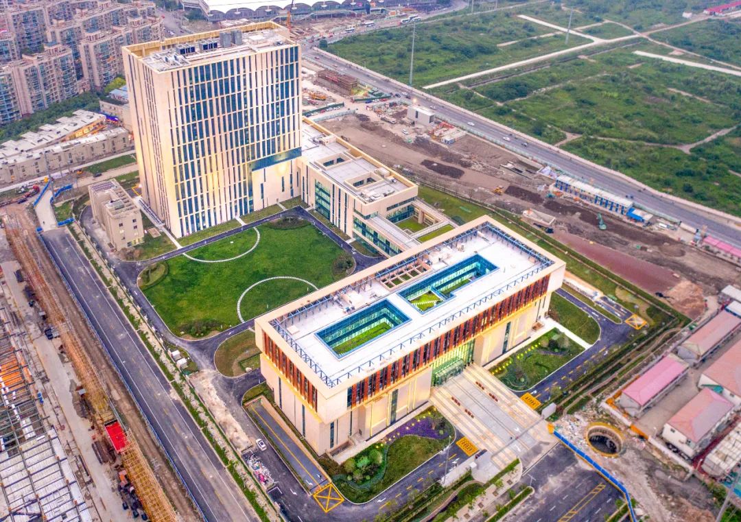 Shanghai Municipal Archives store more than 4.6 million volumes (pieces) of precious archives. This new museum building, with the design concept of "Historical Think Tank", is built with a 17 storey warehouse building (North Building), a 4-storey business and Technology Building (East Building) and a 5-storey public service area (South Building) according to the functional zoning, forming a "C" type surrounding layout. The main building covers an area of 74369 square meters above ground, 30061 square meters underground, 5 floors of auxiliary function rooms, and a construction area of 1651 square meters. The building density is 29%, and the green space rate is 35.1%.