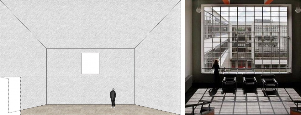 This 2.4mx3.15m high window with subtle skylight caught our attention. The window is a void part in Siza’s sculptural architectural entity, as well as the reason of space tranquility of the space. However, window has a very different symbol in Bauhaus discourse. Under the guidance of promoting the combination of art and technology, window of Bauhaus is not only a cut out of the wall, but also the skin of the framework. It is the corner windows of the Fagus Factory and the glass facade of the Bauhaus school building.