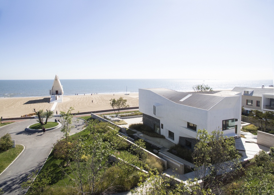 A new beach house has recently been completed in Aranya, Qinhuangdao, China. Qinhuangdao, with its geographic reason as having the nearest beach, is known as the most populous city for millions of people from Beijing and Tianjin to enjoy their summer holidays. Yet an-hour drive down south from the massive crowd, a small town – Aranya, for its serene beach environment and great community engagement, in the last 5 years has become the destination for the new middle-class, to pursue a “quality holiday resort” lifestyle,and ideal location for beach houses.