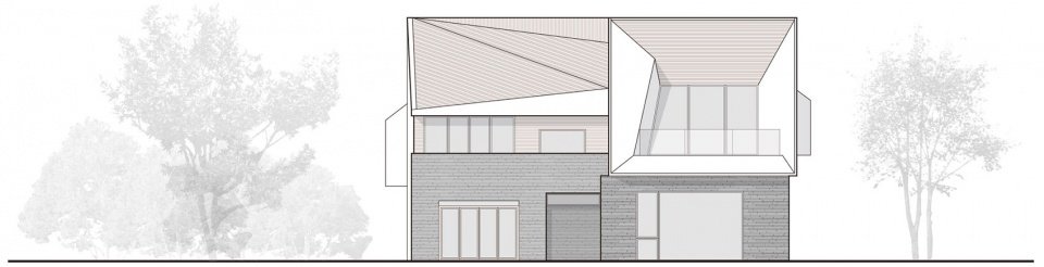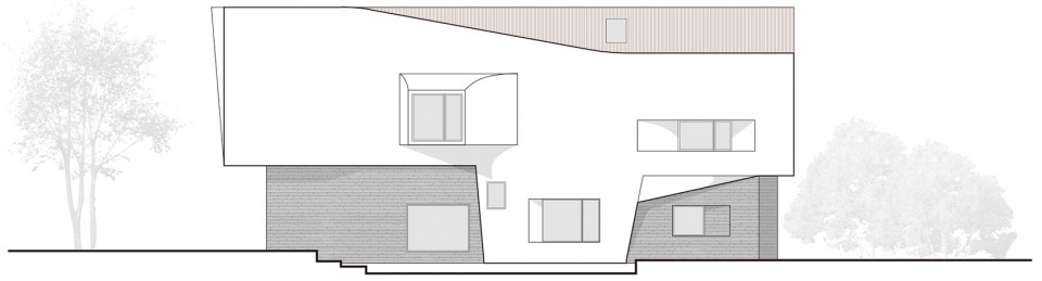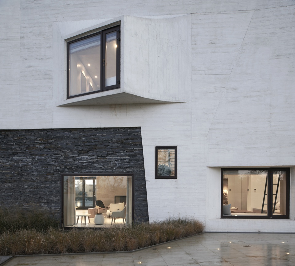 partial exterior view of the north elevation, its undulating surfaces and punched in and out openings provide the audiences with a vivid expression