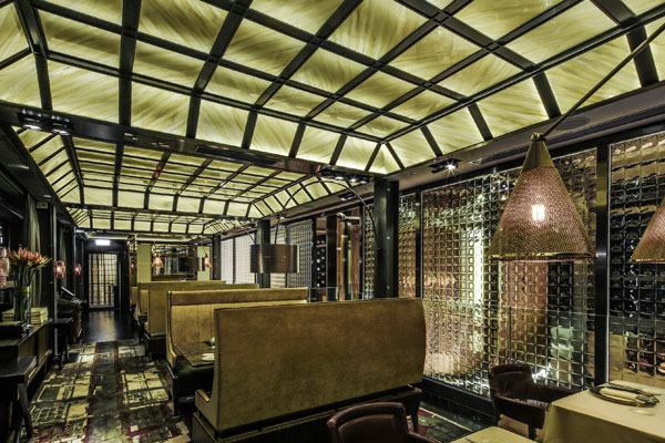 它坐落在夹层上,毗邻一个迷人的阳台区域,俯瞰着PMQ的立方体——位于该建筑两栋建筑之间的庭院空间——并以诱人的玻璃、金属和大理石组合为特色,配以柔软的天鹅绒高背沙发和软皮椅。