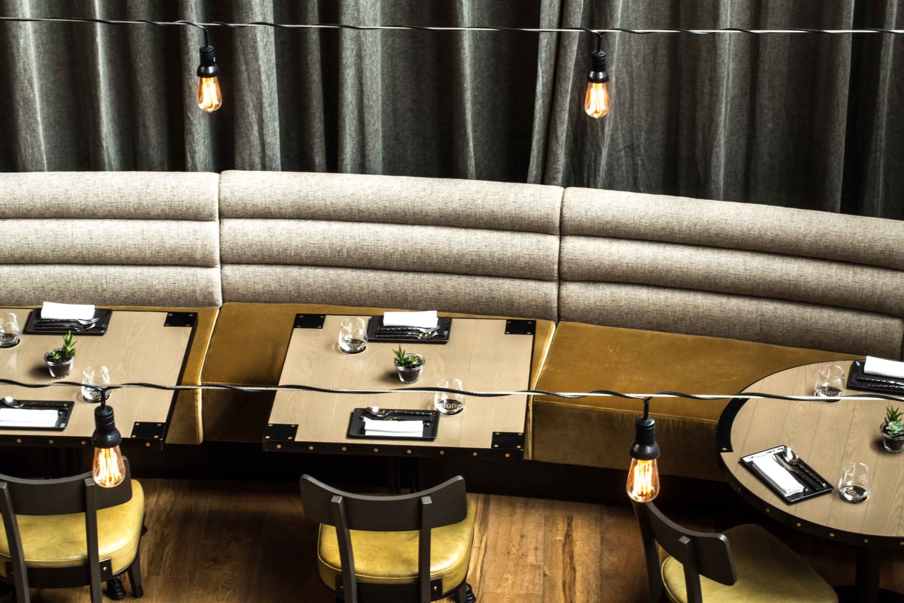 Two Spanish restaurants on two floors of the Arts Quarter in the former Police Married Quarters. The industrial feeling of the building provides a backdrop to the two different dining experiences. Upstairs the drawing room is a smarter restaurant with upholstered booths and a circular private dining room. Downstairs Isono has a more casual, bustling street feel with a lively central circular bar and film screenings on the wall at the far end.
