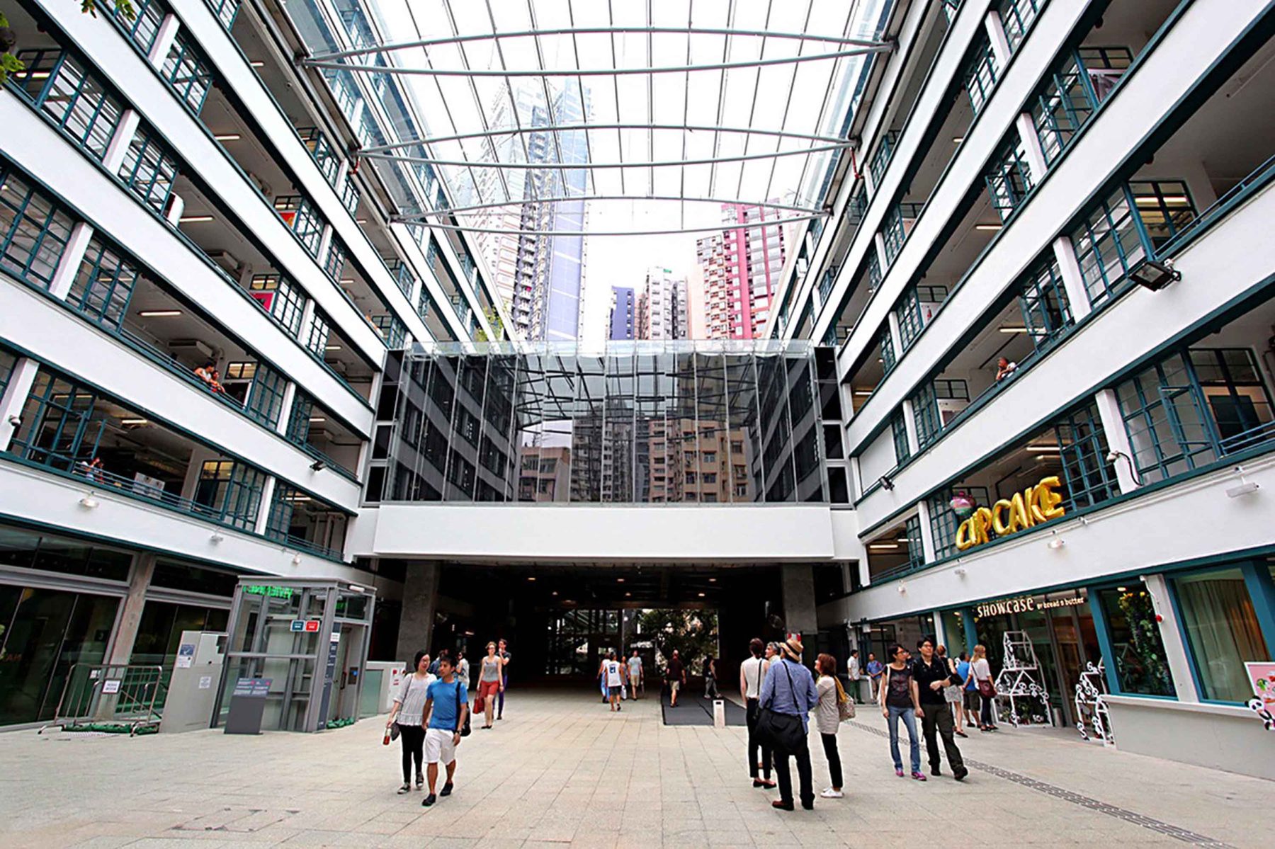 There is also an outdoor area featuring a separate bar and lounges that overlook the PMQ complex.