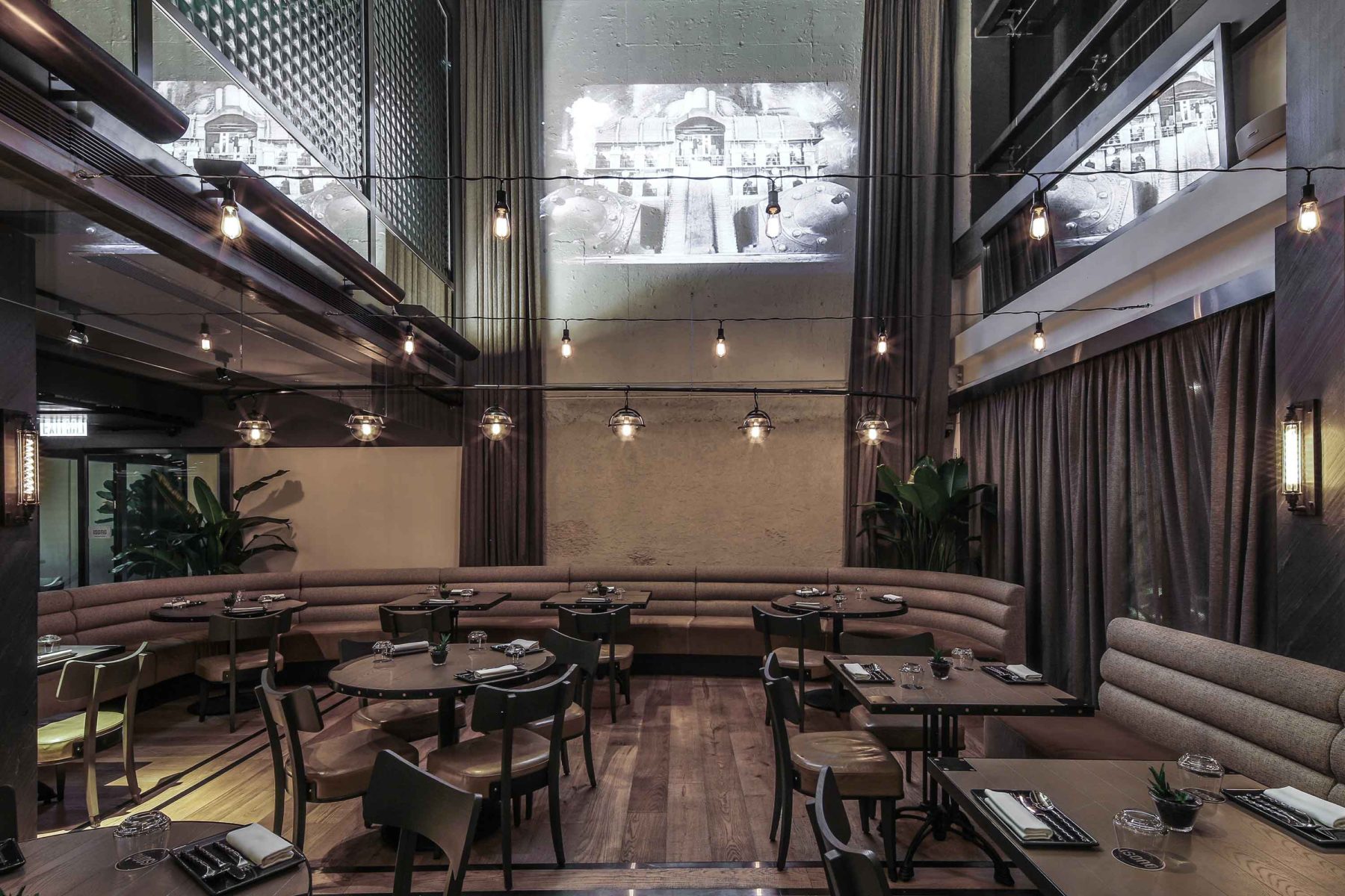 两个西班牙餐馆位于前警察已婚区艺术区的两层。建筑的工业感为两种不同的用餐体验提供了背景。楼上的客厅是一家更智能的餐厅,有软垫隔间和一个圆形的私人餐厅。楼下的Isono有一个更休闲、更热闹的街道感觉,中央的圆形酒吧和远处墙上的电影放映。