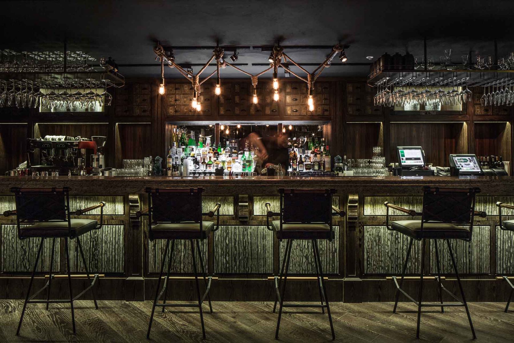 A contemporary Cantonese restaurant in the basement of the Standard Chartered Bank building in Central. The original structure of the site lent itself to a layout that consists of different dining experiences of varying character and intimacy. The restaurant tells the story of Hong Kong’s past, with hints and clues to the lives of the building’s imaginary former occupants.