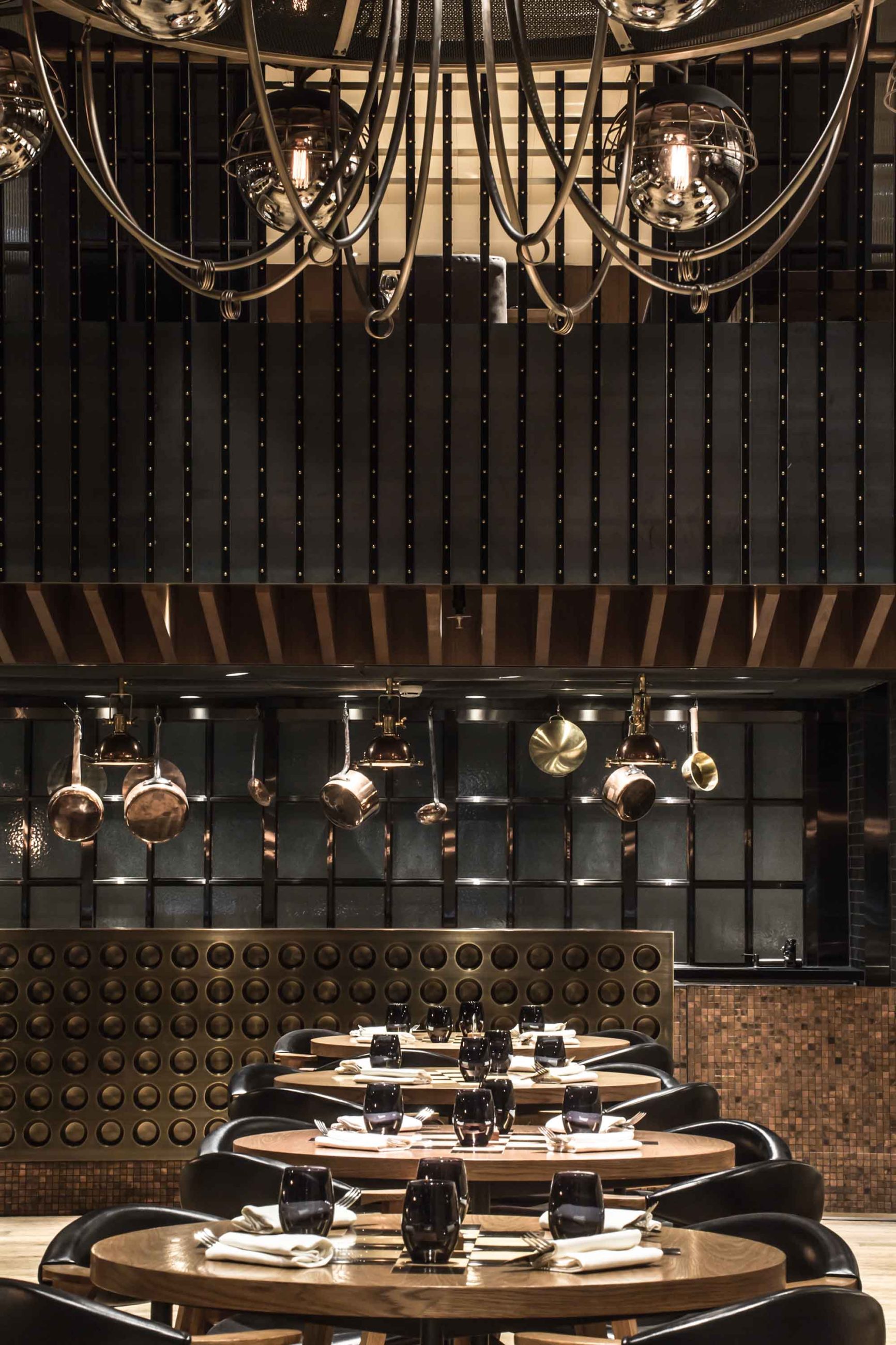 在香港著名的赛马会的一个自助餐厅餐厅和游戏厅。面临的挑战是让用餐者既能社交又能保持隐私,并且随时都能轻松获得食物供应。一座宏伟的楼梯为电影场景创造了一个引人注目的入口,让人感觉既坚固又特别——这是一个庆祝的场所。