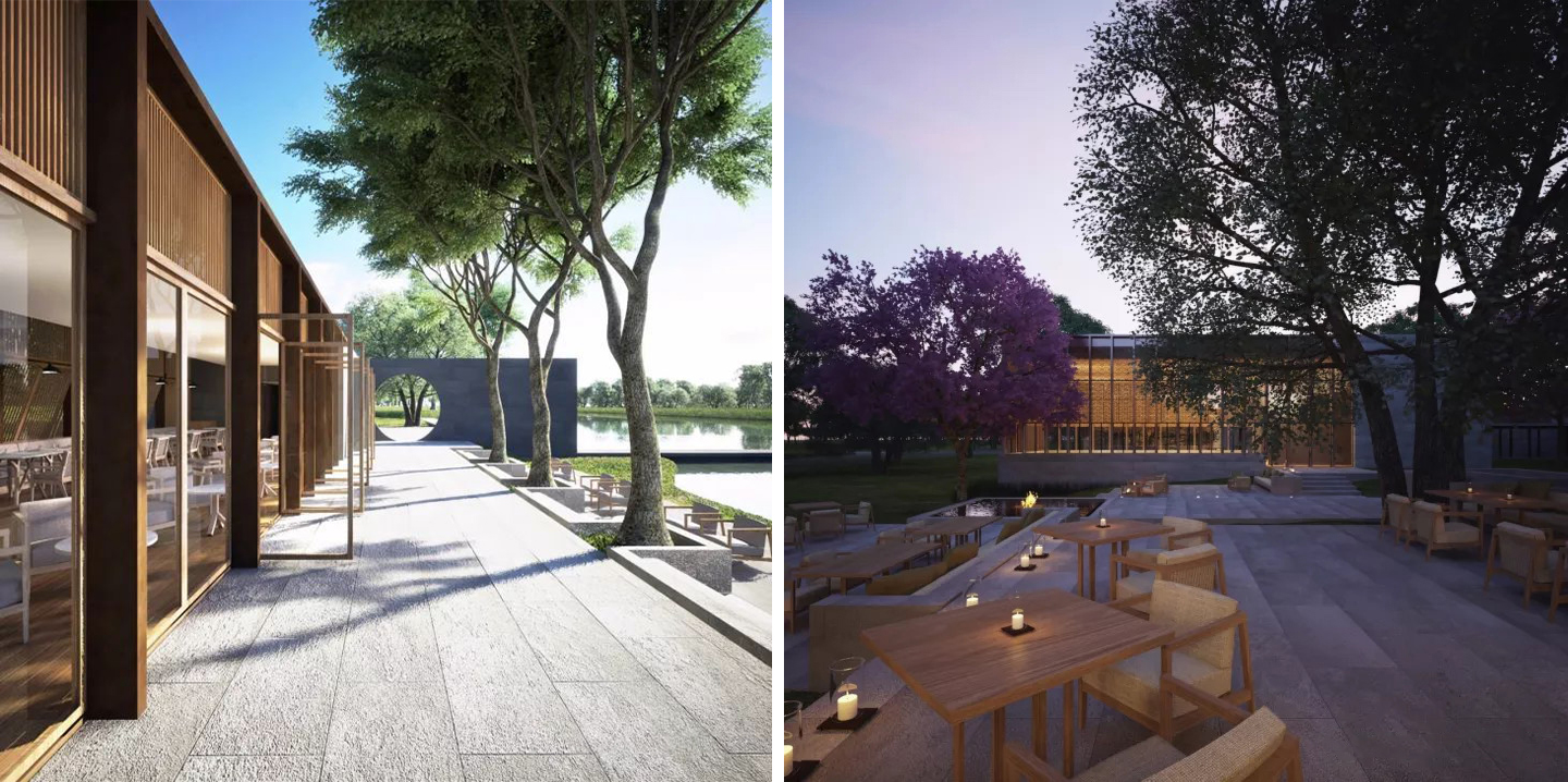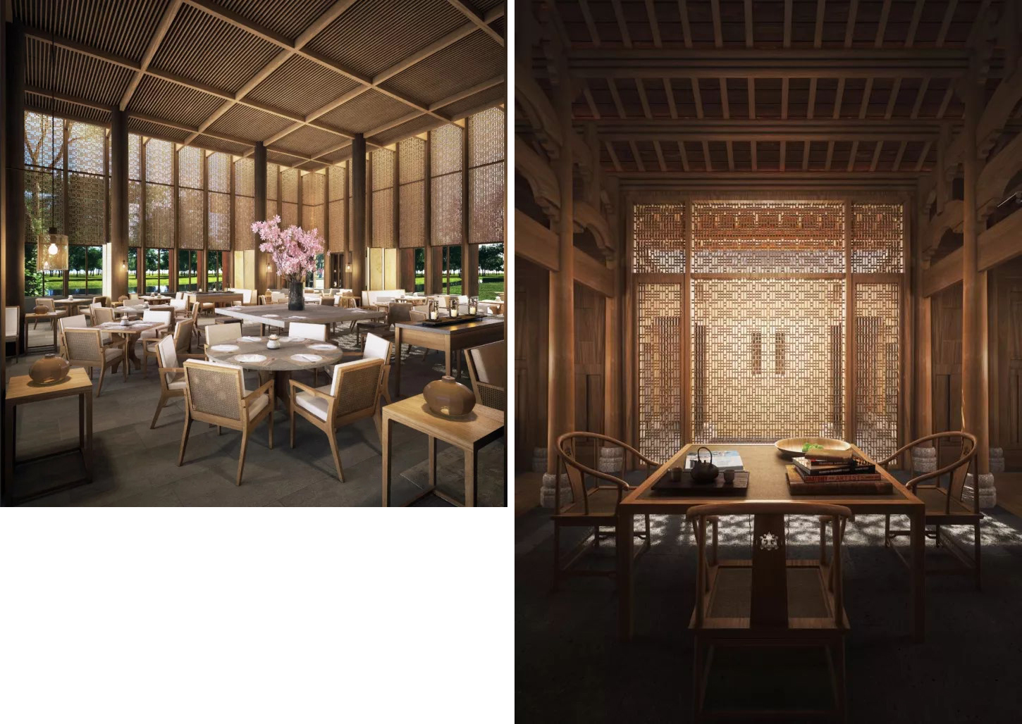 Yangyun aman has five restaurants and bars distributed in the forest of the hotel. Each restaurant integrates exquisite modernity, simple design and local food philosophy. Nama, a poetic and picturesque lakeside Japanese restaurant, introduces the simple and colorful tradition of harmony food into the space. The design originates from the traditional Japanese food, praising the true flavor of the ingredients and implying the harmony of five flavors.