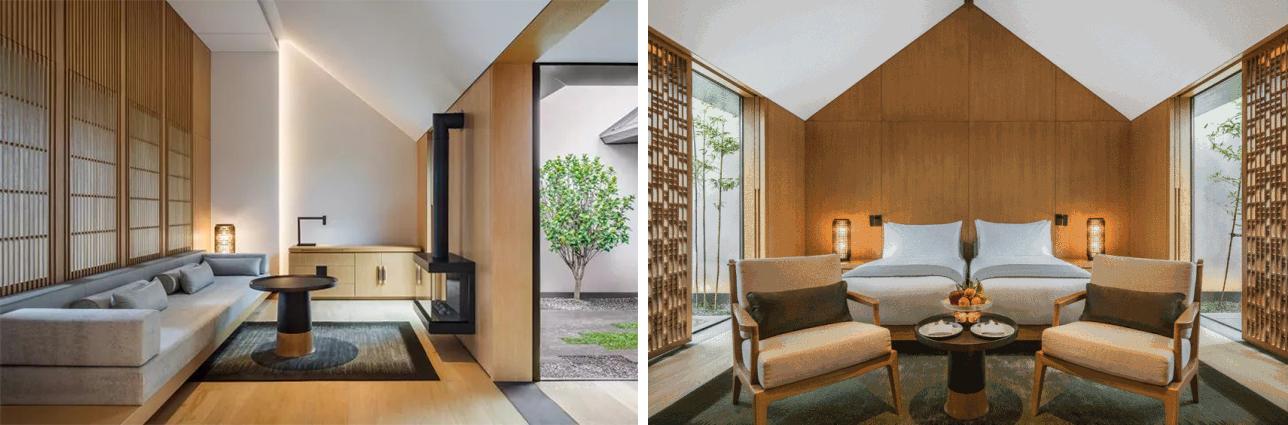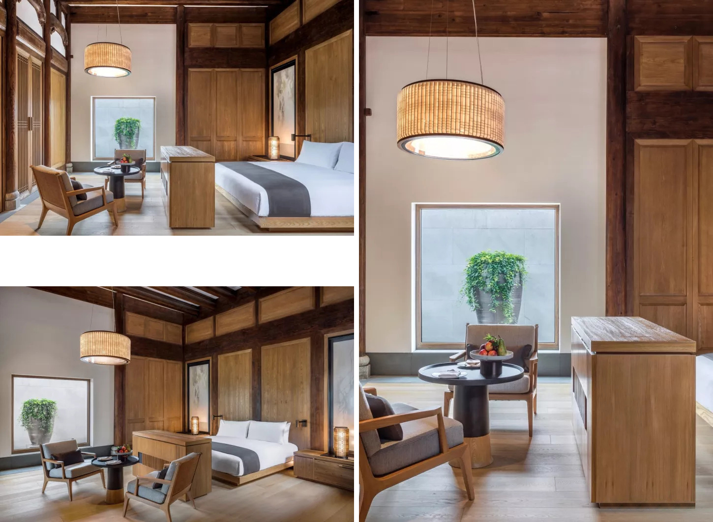 These new suites with an indoor area of 65 square meters are designed to create a living environment integrating ancient and modern together with the ancient house, and complement each other between the old and the new; Each suite has two open-air private courtyards, which is a clever design to pay tribute to the classic residential structure of "patio", an air eye in traditional Chinese architecture.