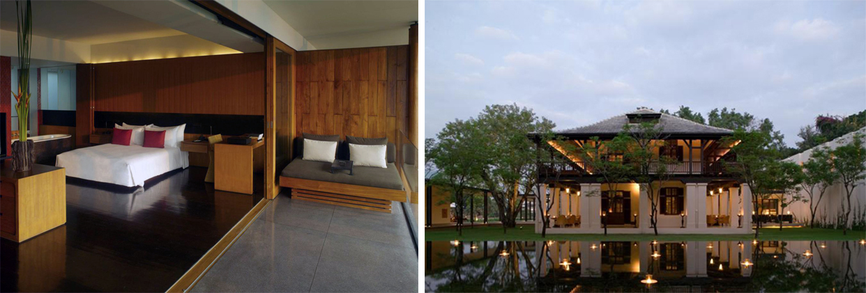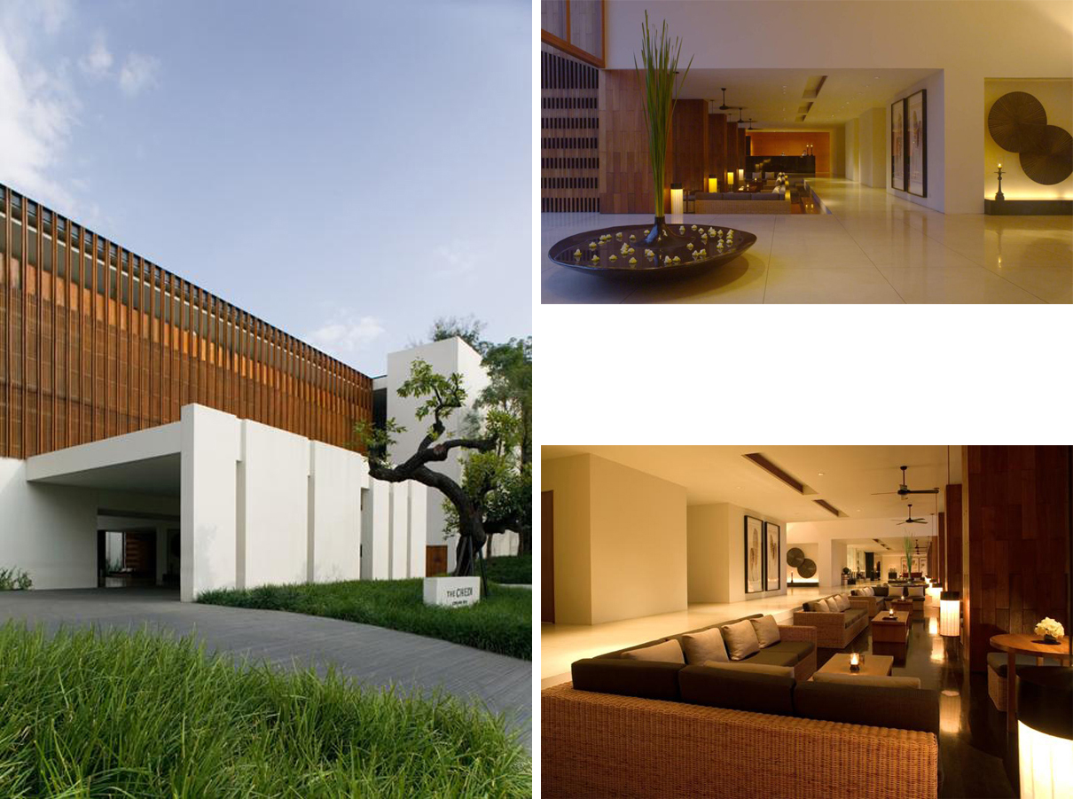 The design intention of the plan is to combine the urban location with the atmosphere of the resort hotel, and combine the existing colonial houses and sites, using the modern interpretation of traditional Thai materials. The lobby of the hotel is centered on the existing house and is located in the garden view courtyard, with a large reflecting pool separating the old and new buildings.