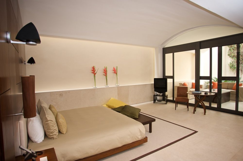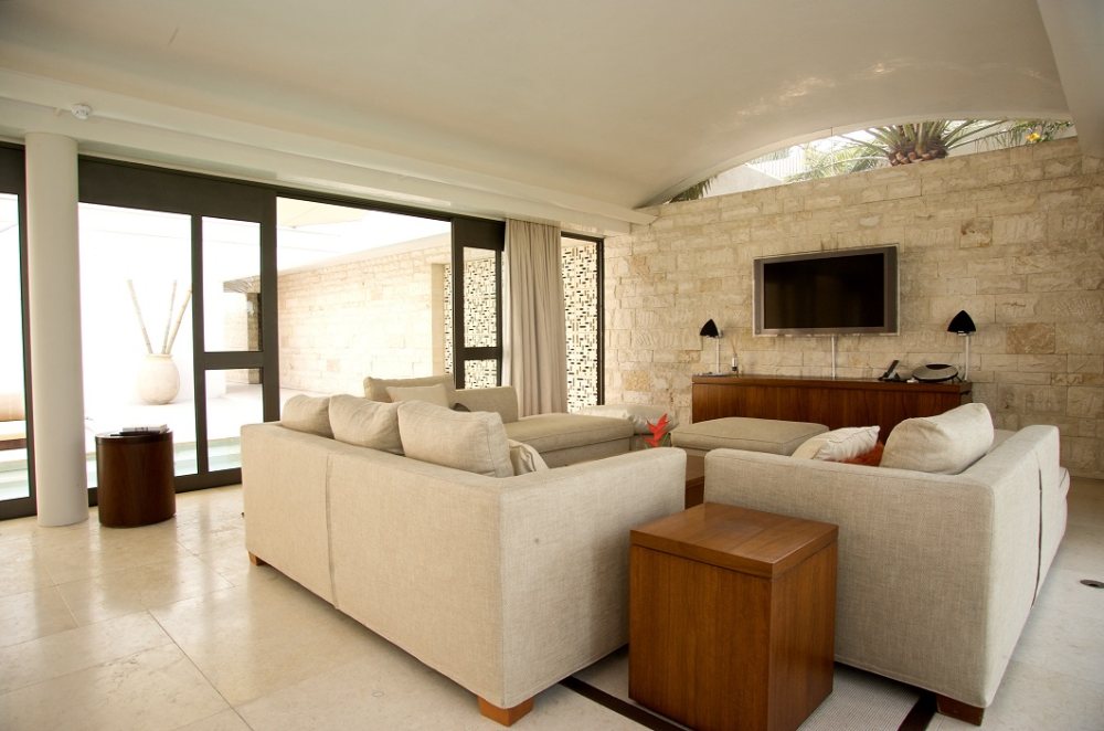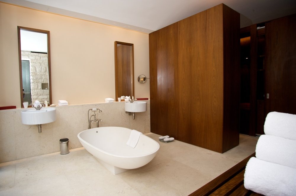 The suite overlooks a garden landscape with two century old olive trees, a private courtyard with outdoor showers, and a hidden villa with a private swimming pool. Each room is equipped with high-tech living equipment, recliner and private wine cabinet designed by Kerry Hill.