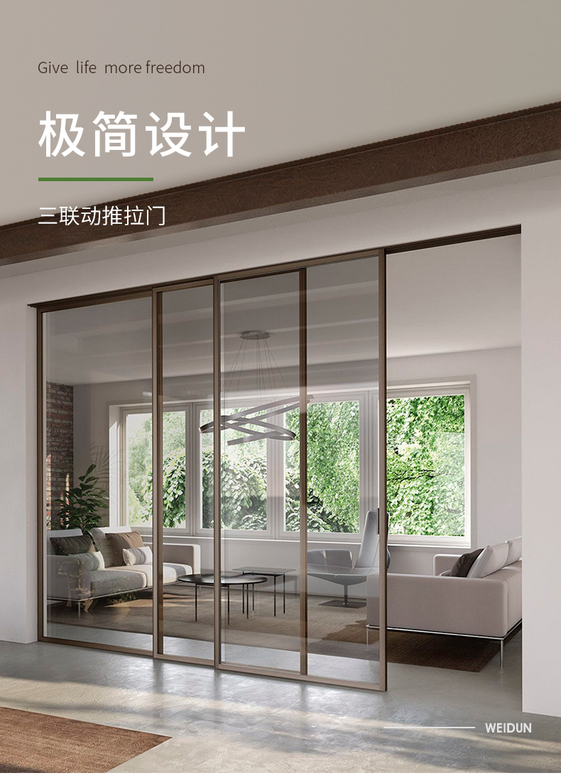 三联动推拉门现代简约阳台门室内门入户门厨房隔断门铝室内门定制