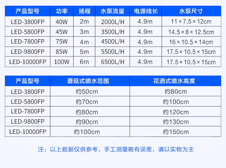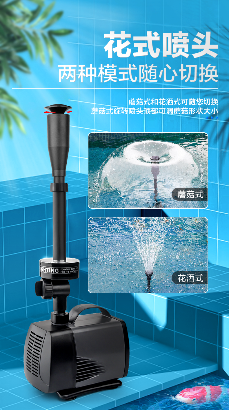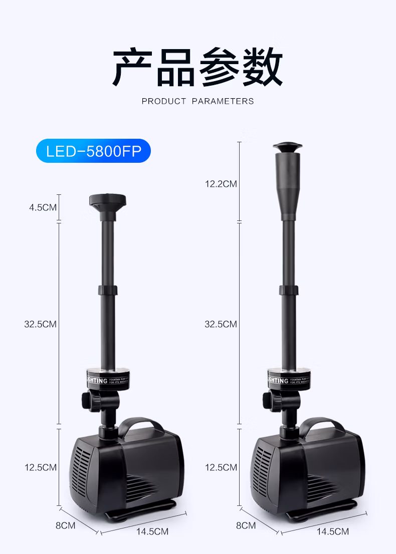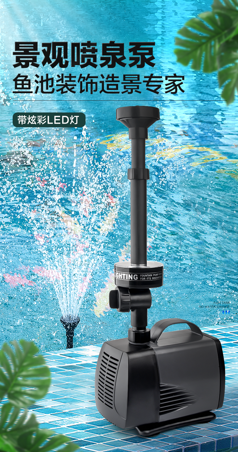 SOBO/鱼池喷泉泵鱼缸循环泵带彩灯水池喷泉假山潜水泵景观喷泉头高扬程大流量带LED彩灯个性喷头耐用 LED-7800FP【75瓦】
