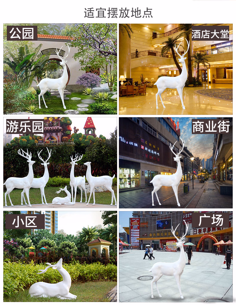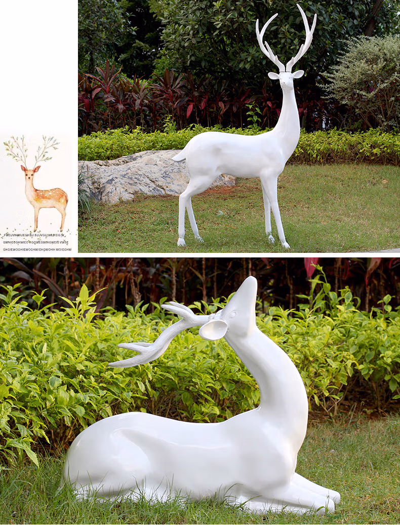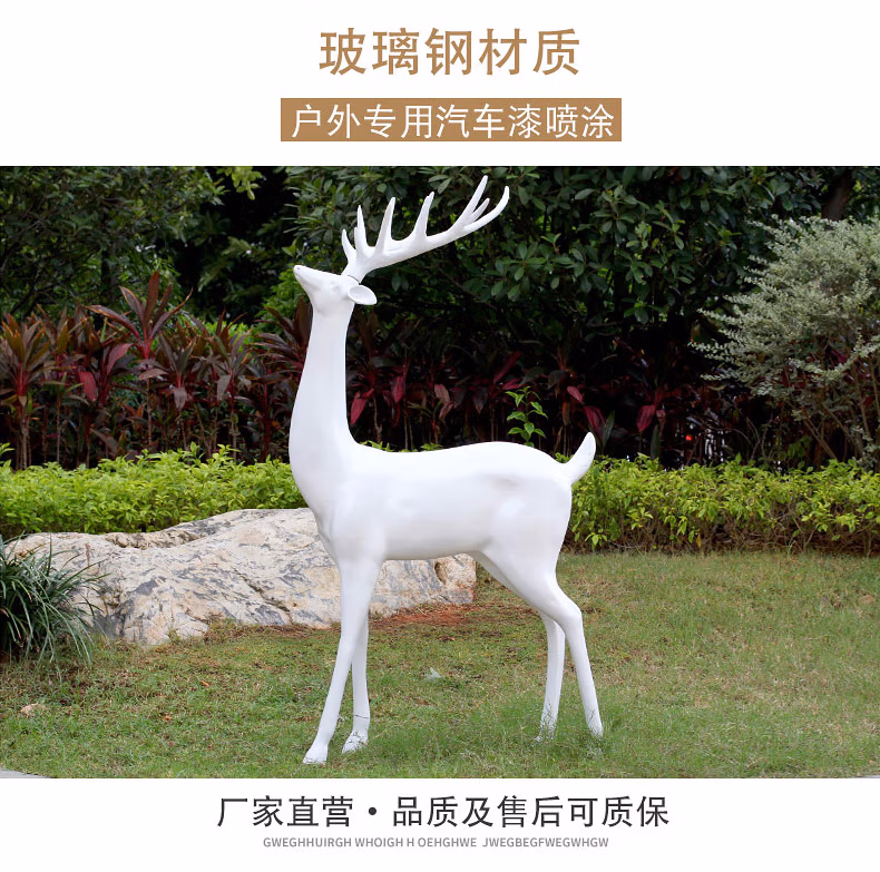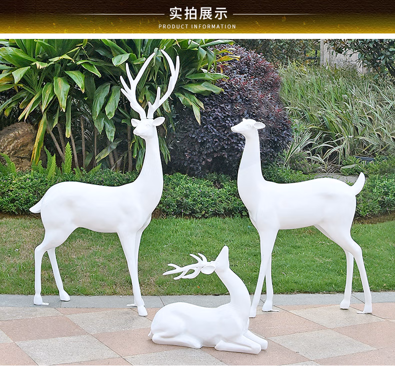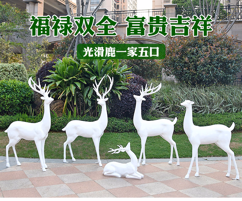 良泽玻璃钢梅花鹿摆件户外园林景观动物雕塑小区售楼部麋鹿装饰小品 XL1207A-1号白色公鹿