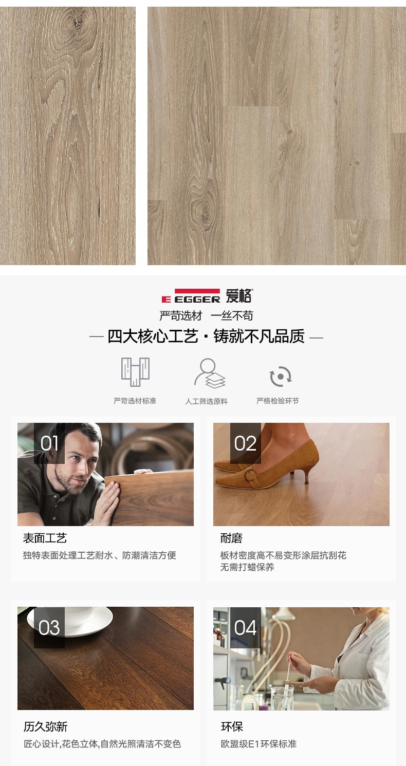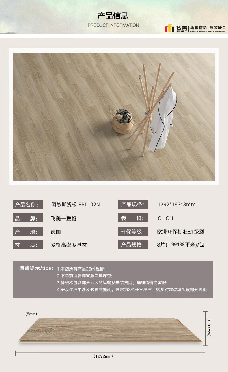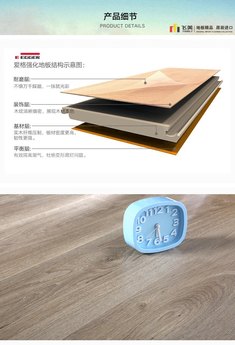飞美复合环保地板强化地板 德国爱格阿敏斯浅橡木地板 原装进口家用耐磨地板
