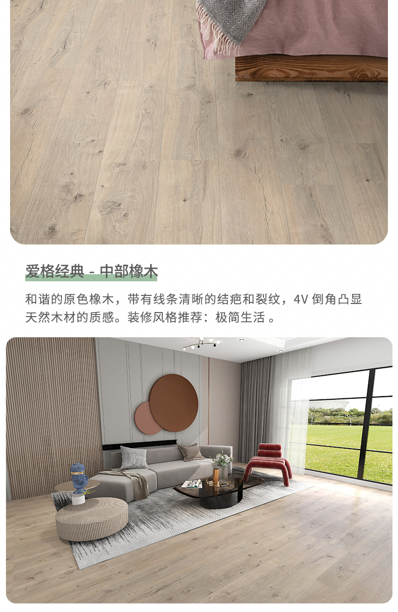 飞美复合地板 进口强化复合EPL139中部橡木地板 适用地暖耐磨环保复合木地板 橡木色纹理 7mm厚 EPL139中部橡木