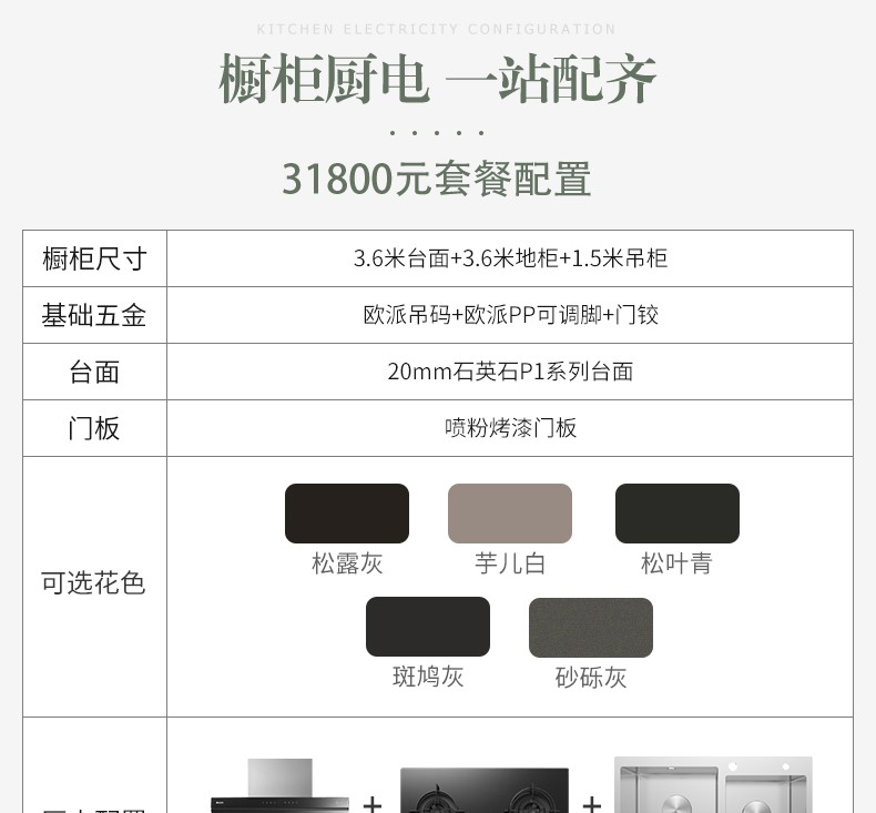 3.6米地柜\台面+1.5米吊柜+烟机炉灶水槽