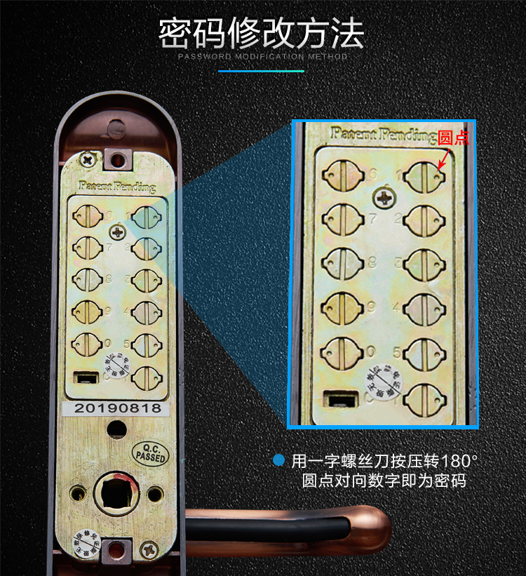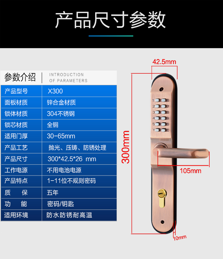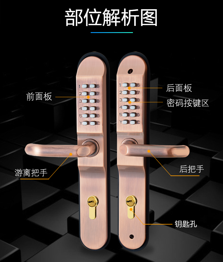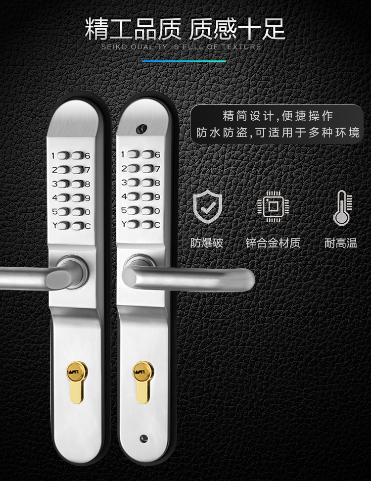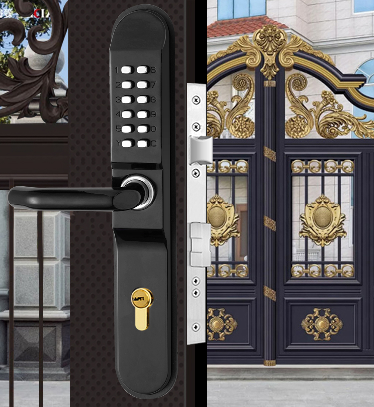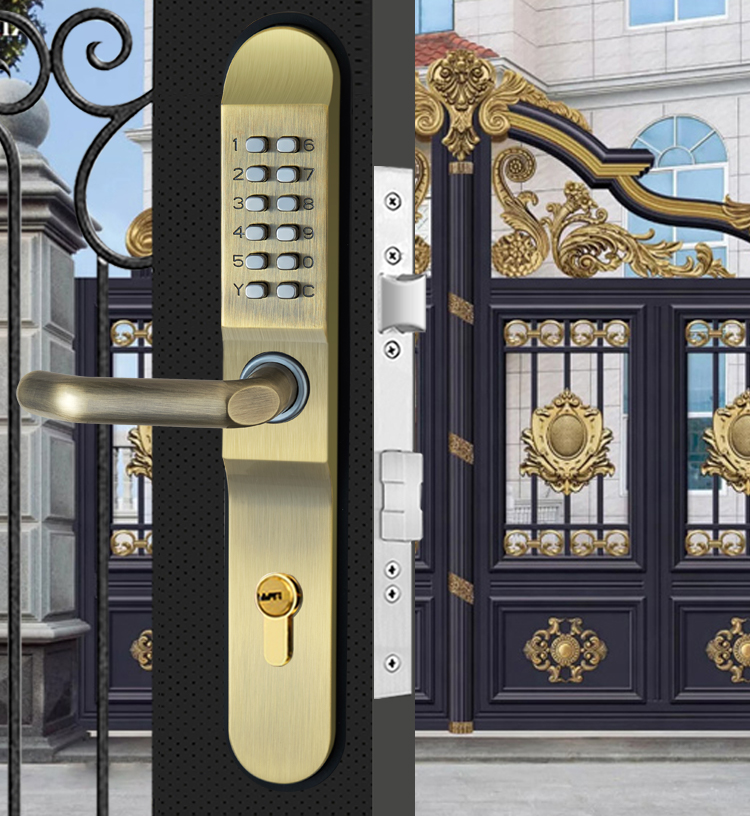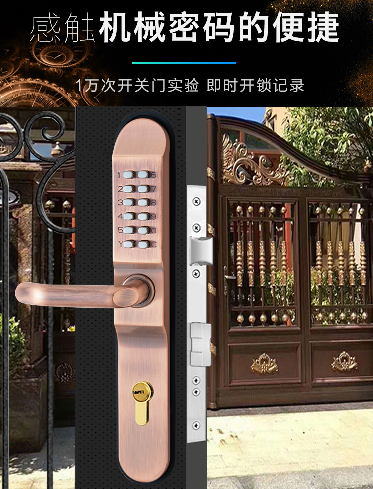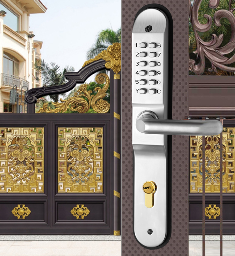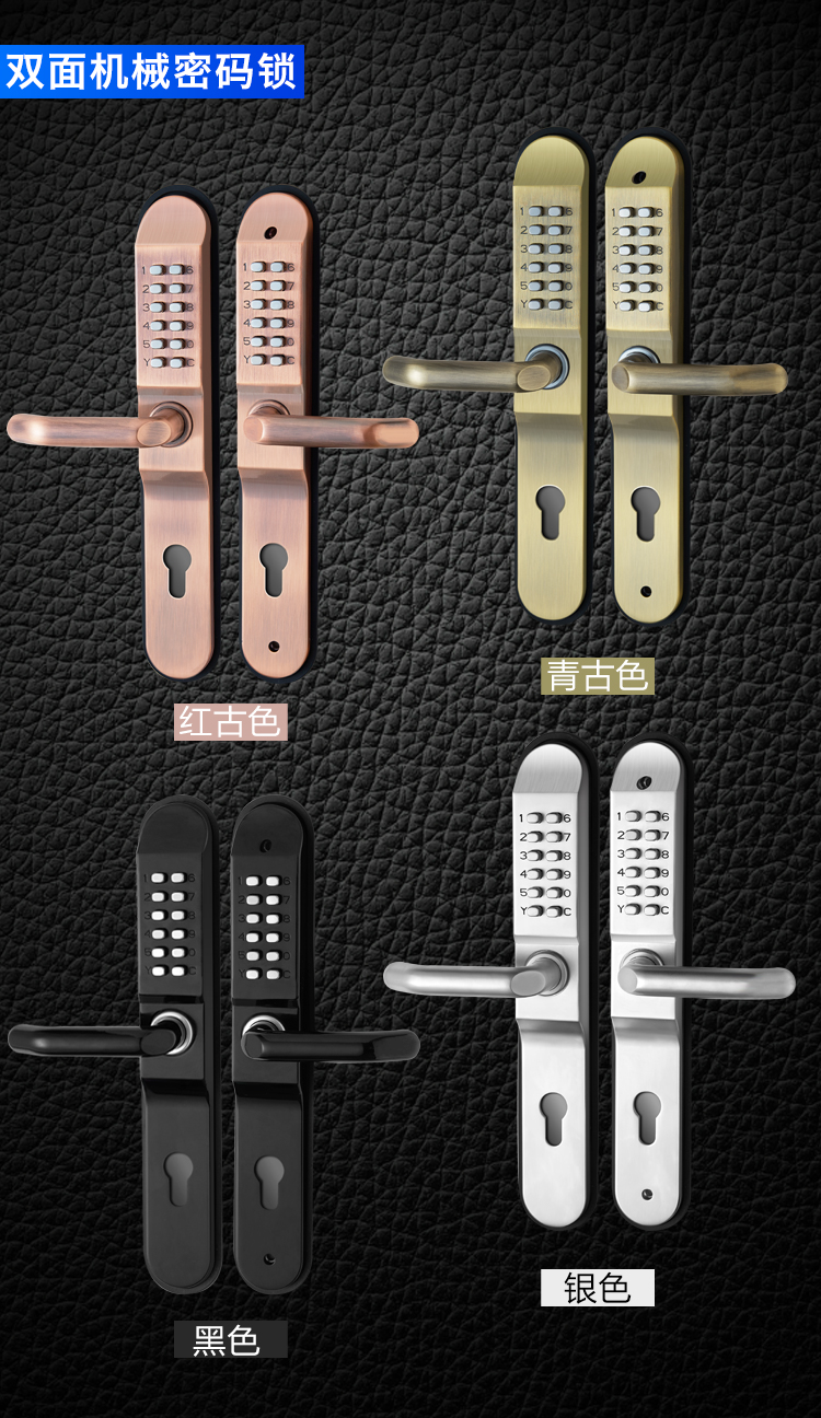 机械密码锁门锁户外防水防晒庭院门铁艺门双面密码锁不用电防盗