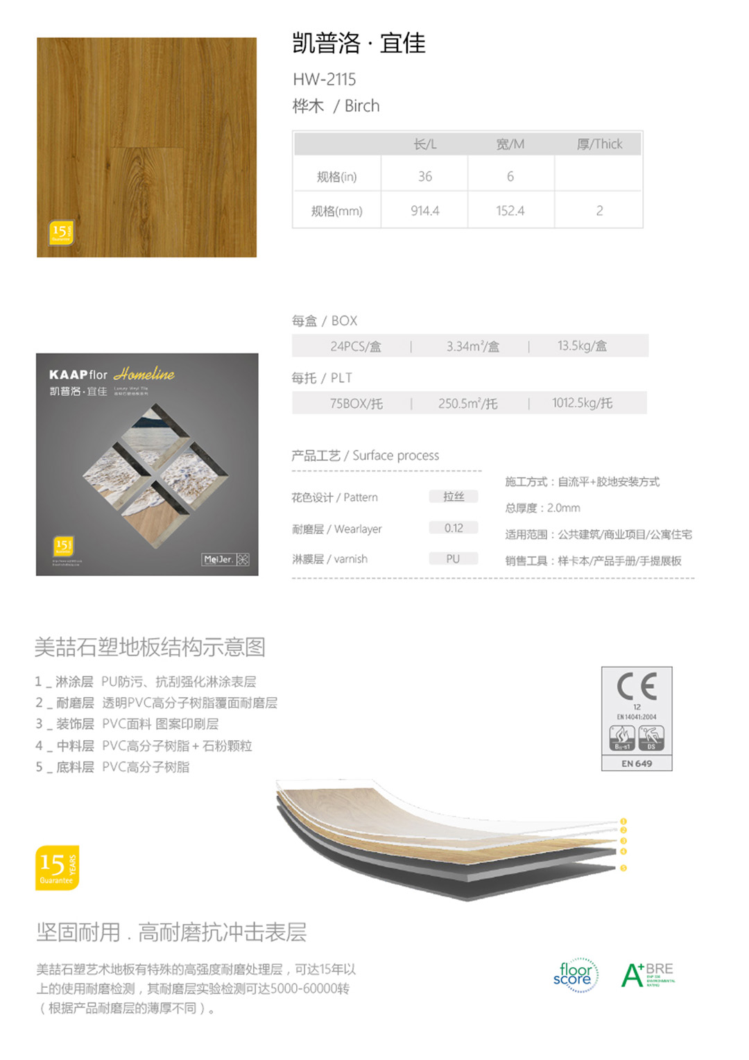 美喆石塑地板凯普洛系列HW2115环保耐磨防水地板家用商用