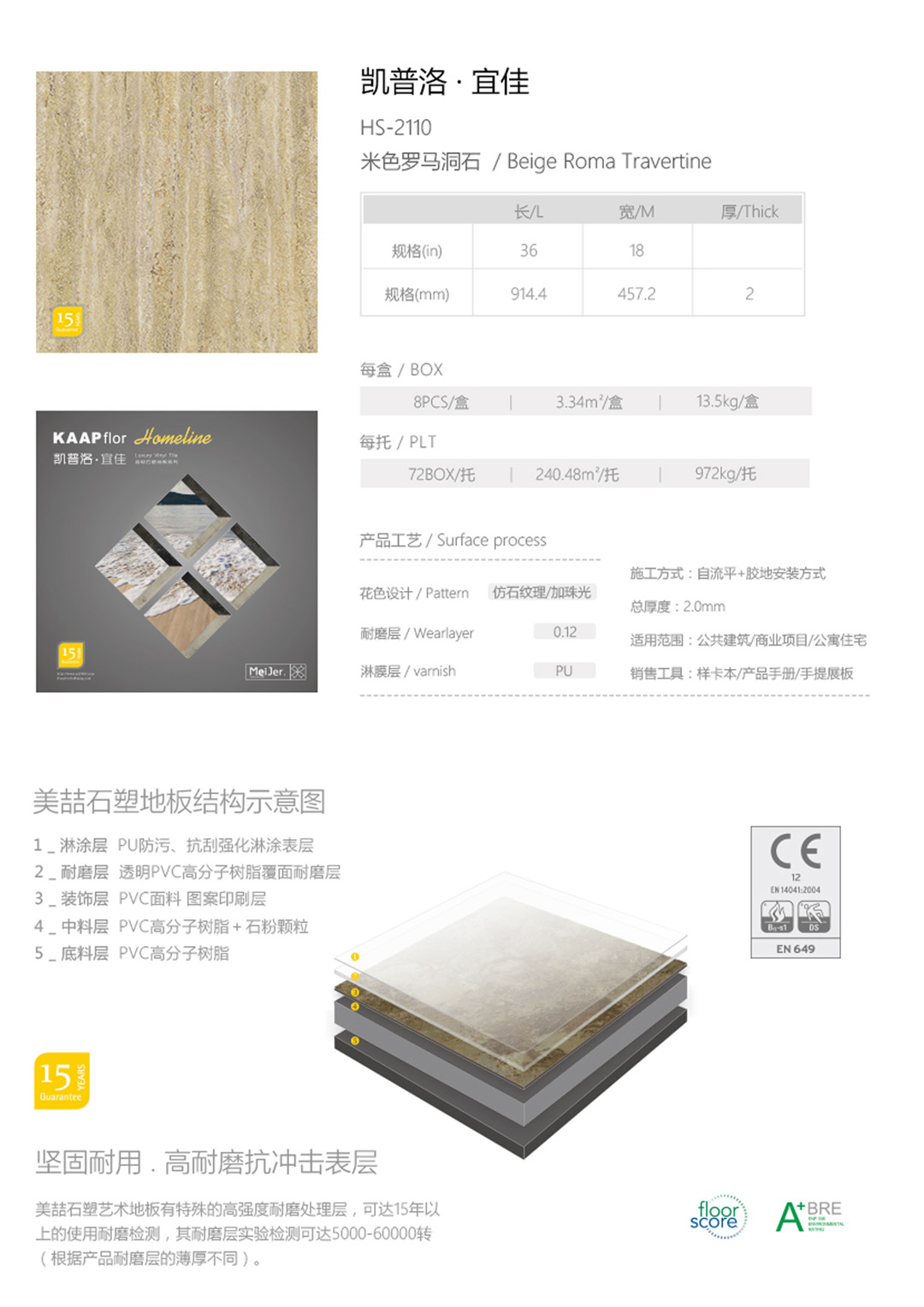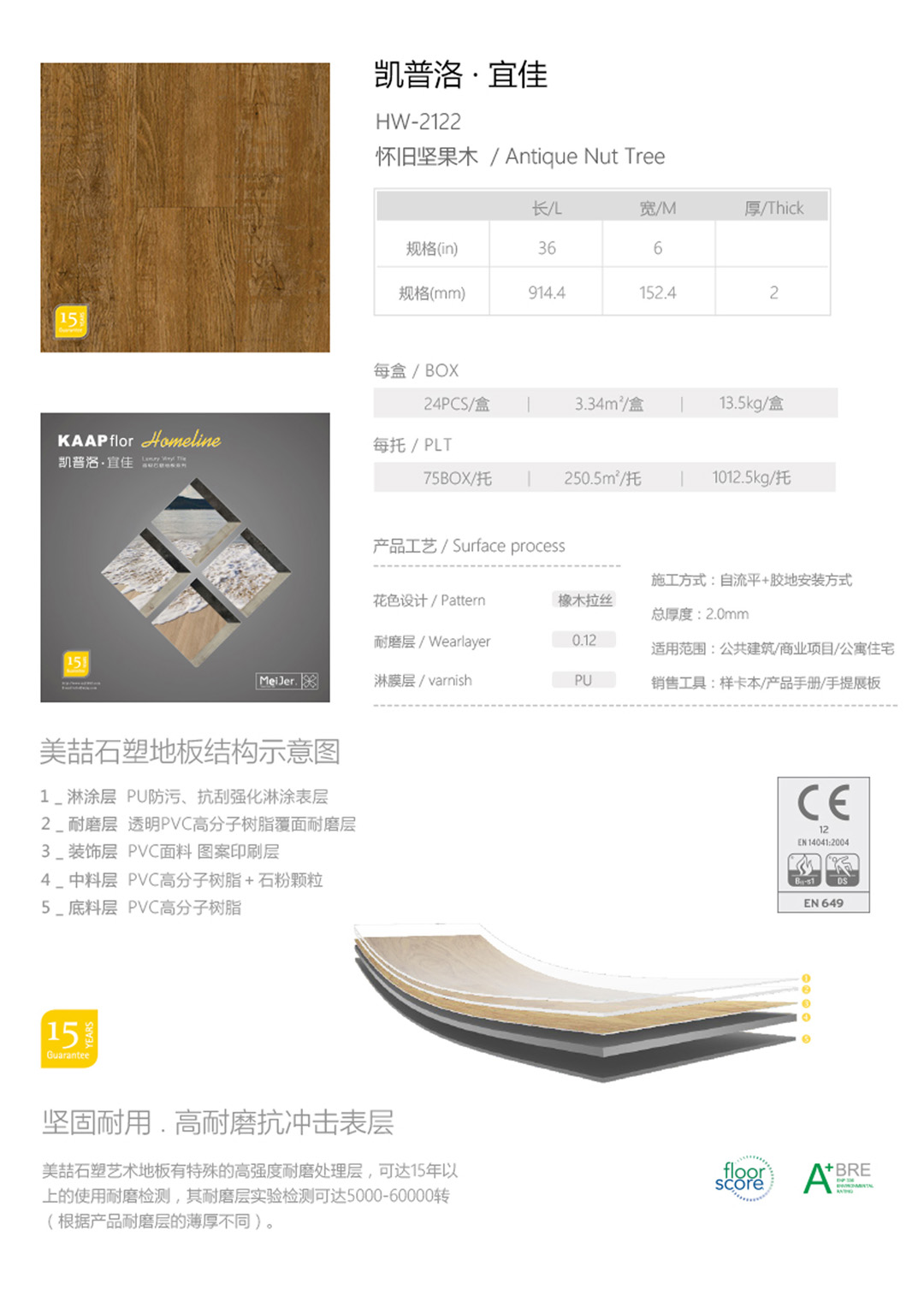 美喆石塑地板凯普洛系列HW2122环保耐磨防水地板家用商用